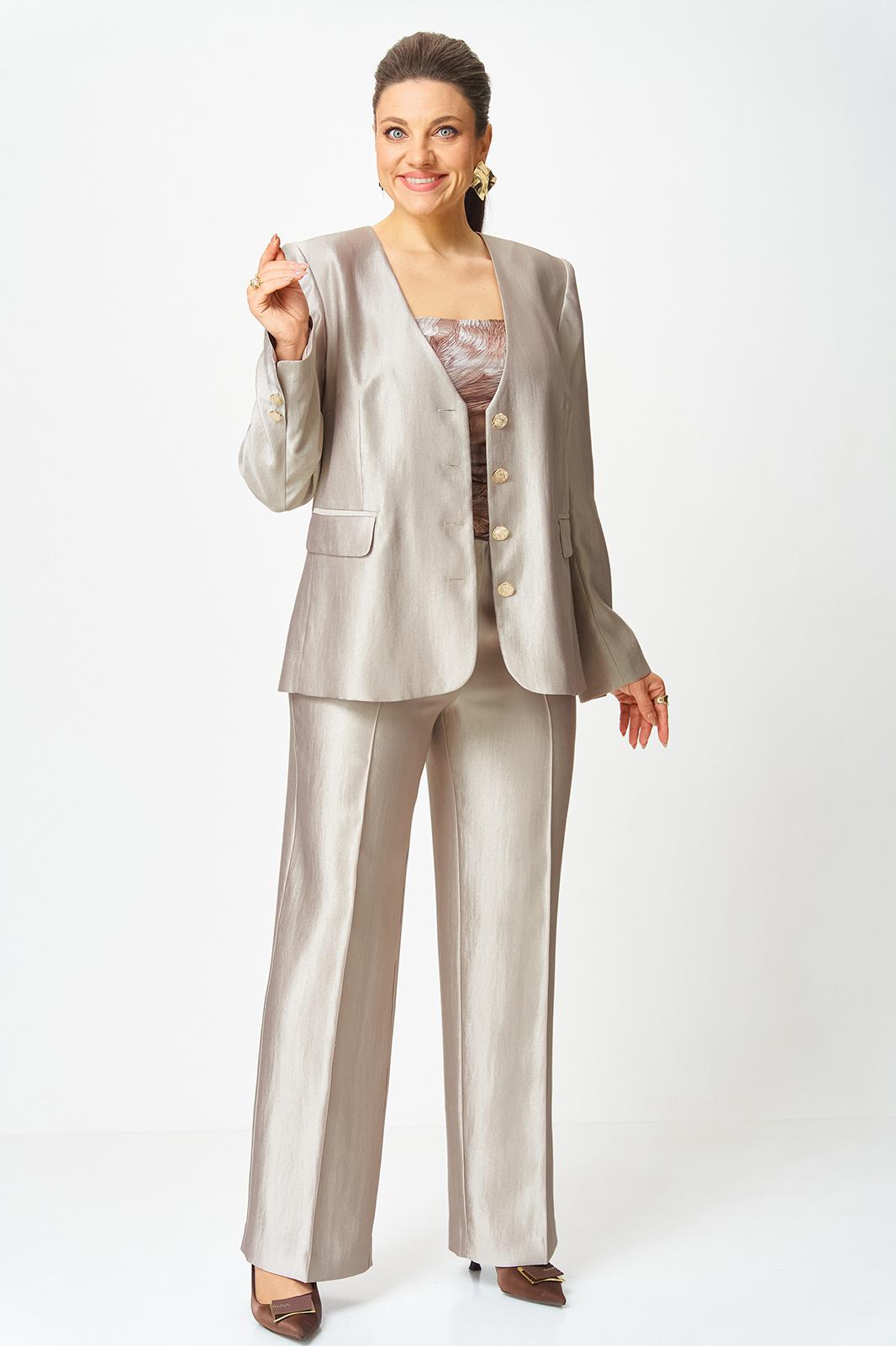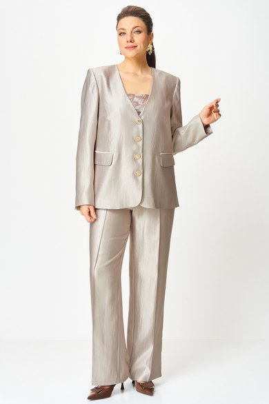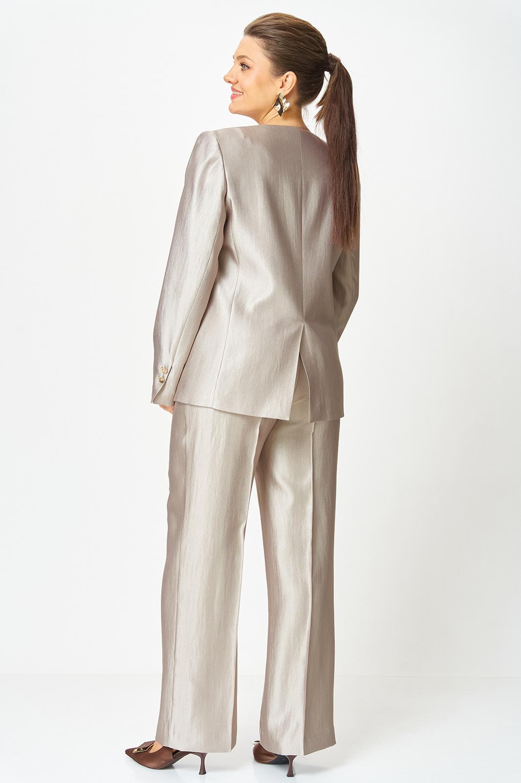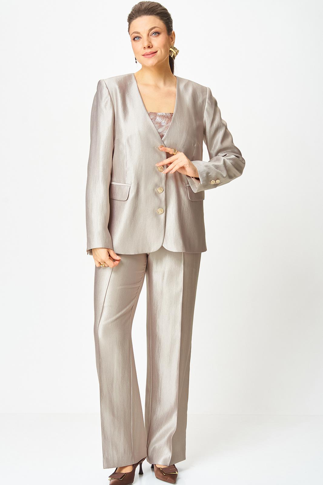 Стильный женский костюм, выполнен в классическом стиле из ткани с небольшим блеском.