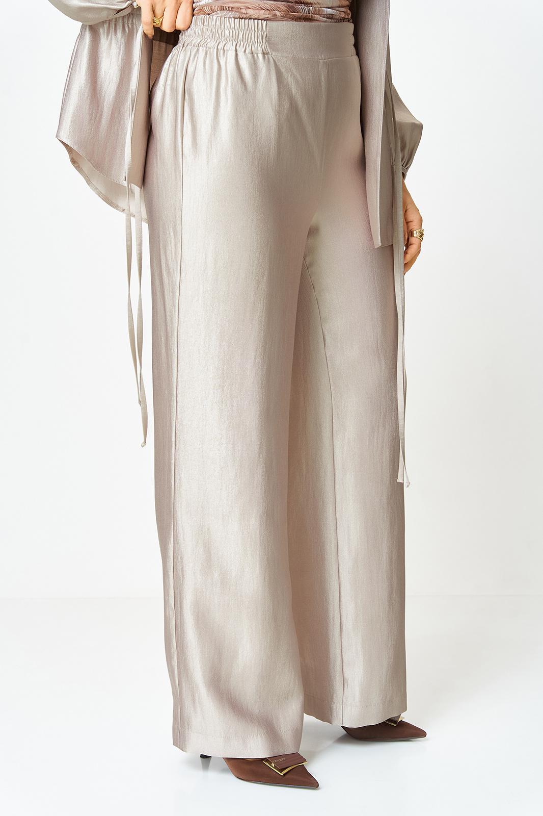Брюки свободного силуэта, верх брюк на поясе с резинкой.