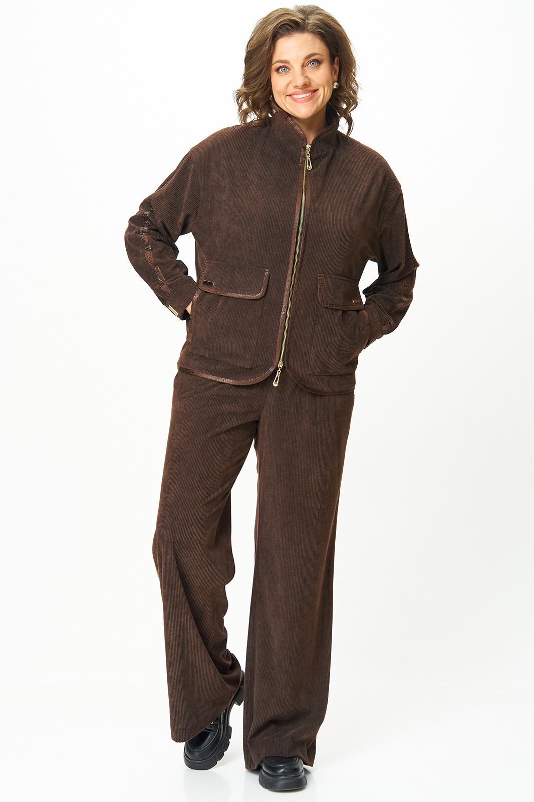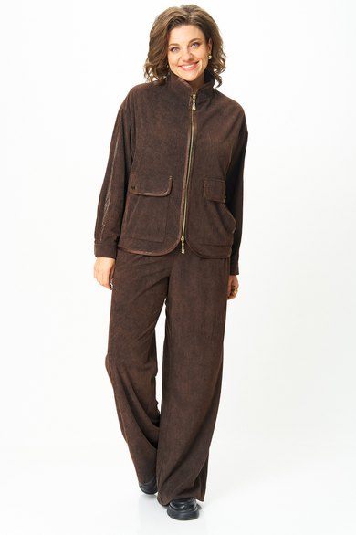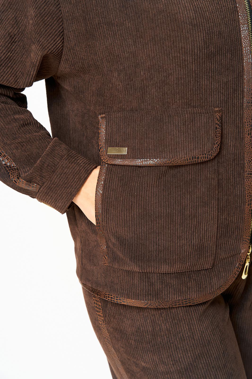 Стильный женский костюм, выполнен из штруксовой ткани, состоит из бомбера и брюк.