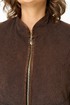 Бомбер свободного силуэта, с застежкой на декоративную молнию, по переду накладные карманы с клапаном, горловина оформлена стойкой, линия плеча спущена, рукава втачные с лампасом, по низу рукава, манжет с застежкой на декоративную кнопку. Край борта, низ изделия, клапаны и кармана с бейкой из отделочной ткани. Бомбер без подкладки.