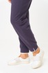Брюки зауженные к низу с боковыми карманами. По низу двойной притачной манжет, нижний манжет из отделочной ткани. Верх брюк на резинке.