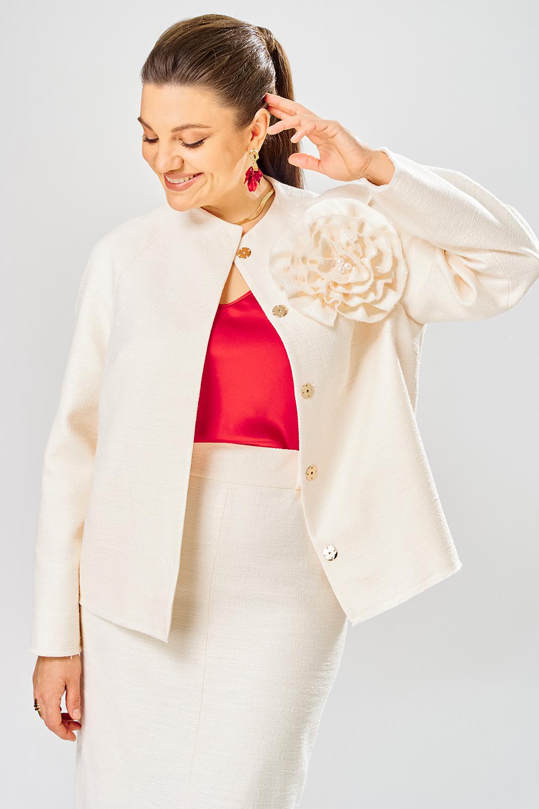 Жакет прямого силуэта, с центральной застежкой на пришивные кнопки
