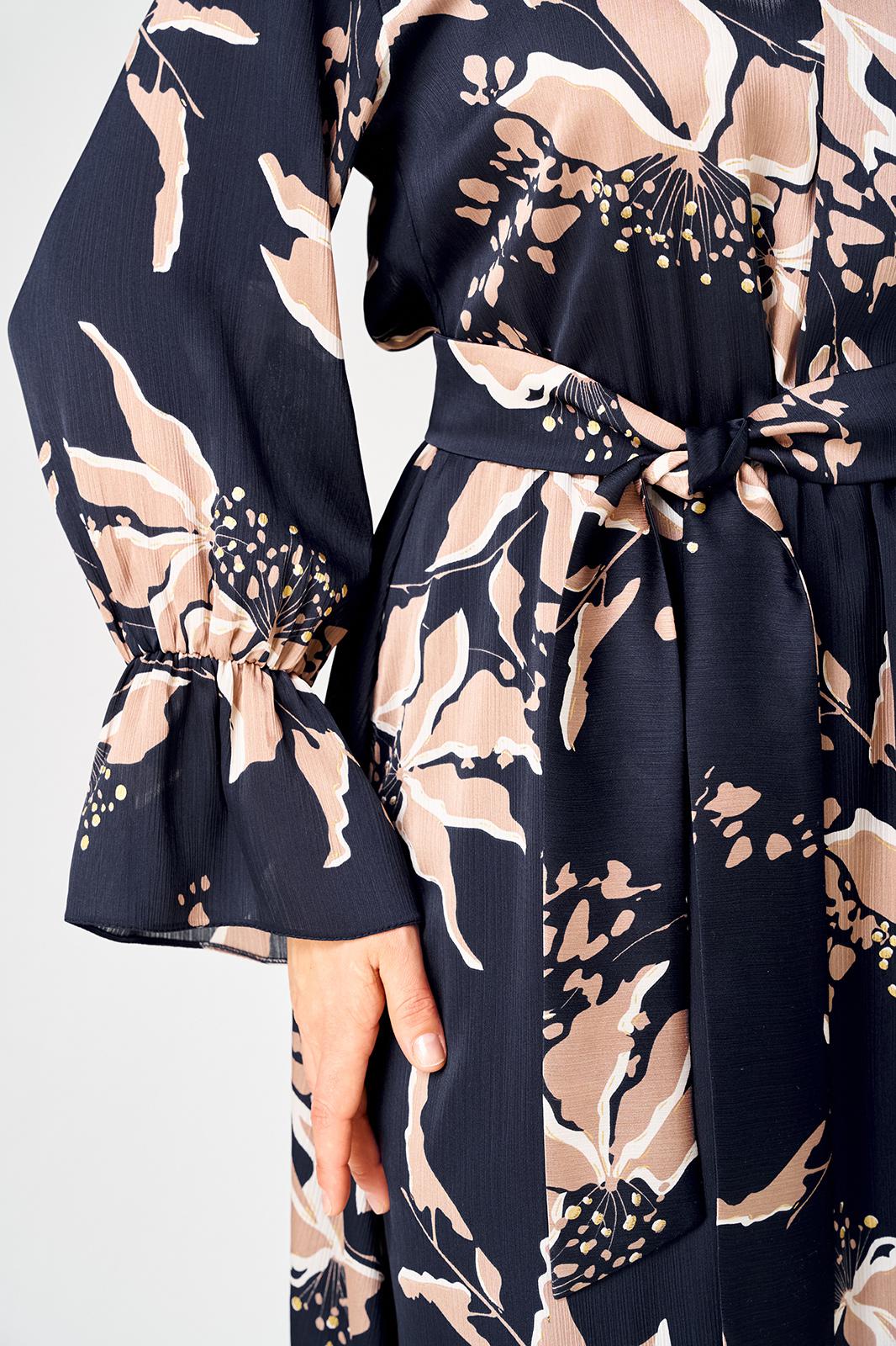 Рукава втачные, расширенные к низу, на расстоянии 14 см от низа рукава настрочена резанка, создавая эффект волана.