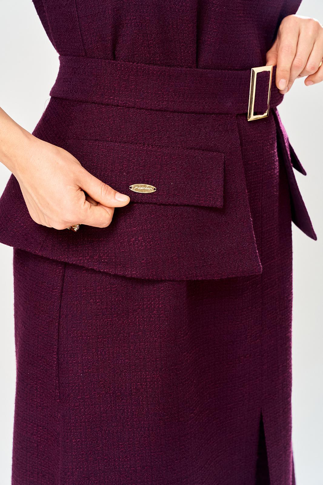 Украшением платья служит сьемная баска на поясе, с пряжкой в цвете золота и декоративными клапанами.