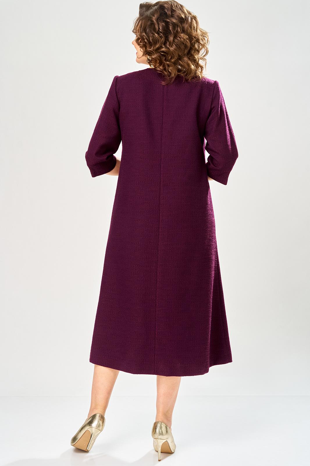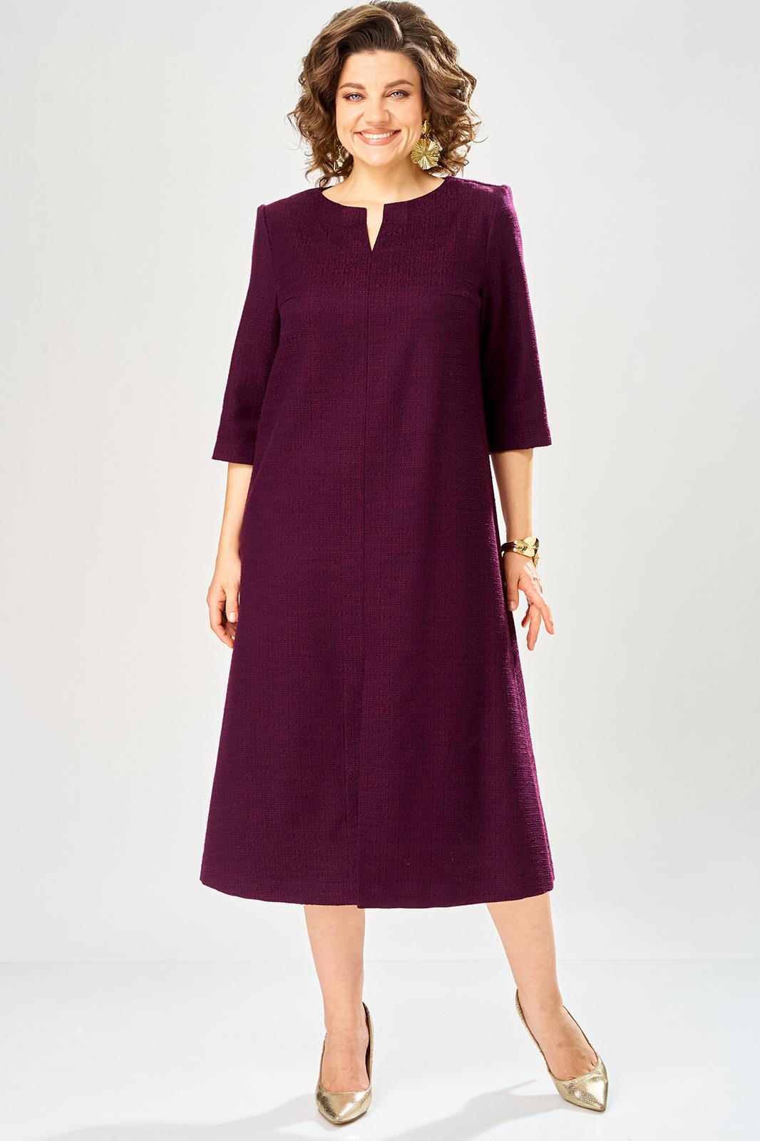 Платье полуприлегающего силуэта, с центральным швом по переду. Горловина круглая с разрезом по центральному шву. Застежка на тесьму молния в центральном шве спинки, рукава втачные, длина 3/4.
