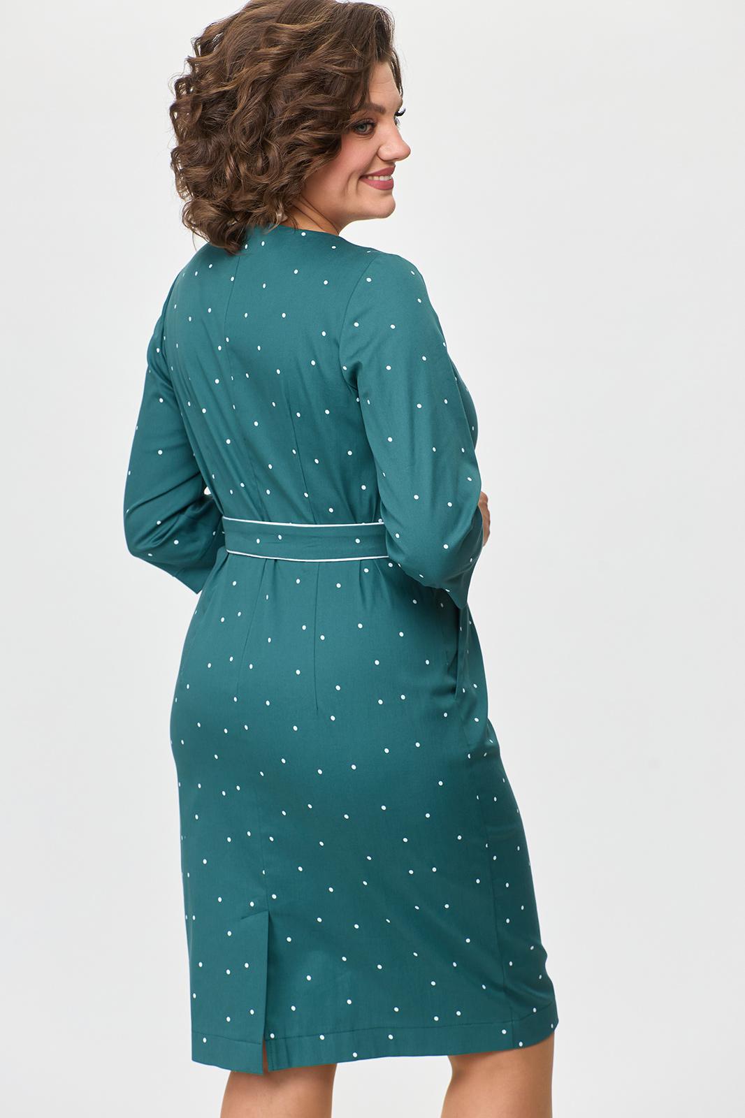 Элегантное женское платье выполнено из плотного эластичного хлопка.