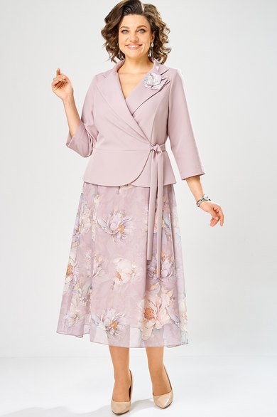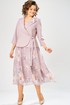 Лиф из плательной ткани, юбка из шифона. Платье с запахом, горловина с воротником пиджачного типа с отложными лацканами. Рукава втачные, длина 3/4.