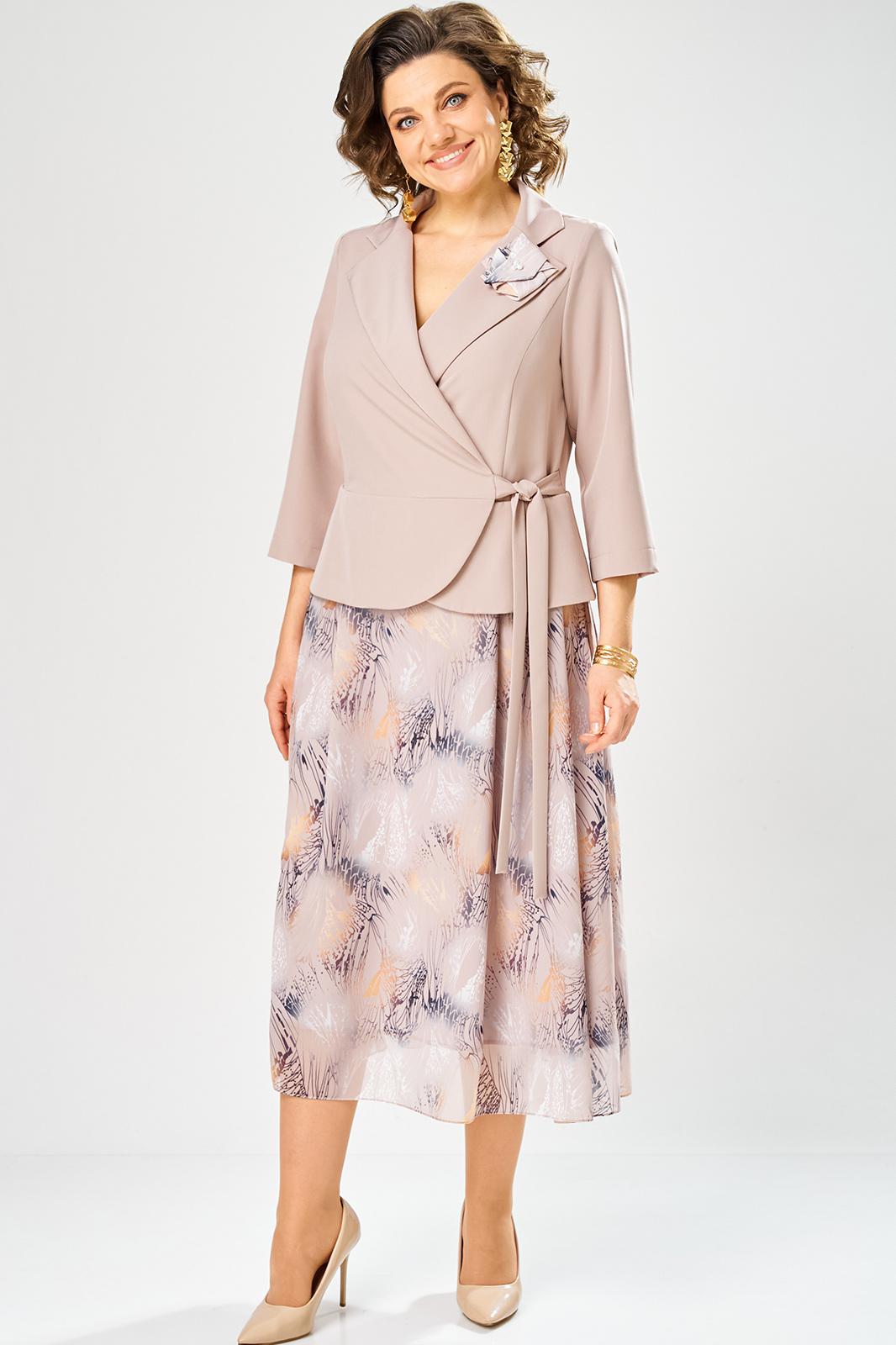 Элегантное женское платье, выполнено в виде имитации костюма из двух видов ткани.