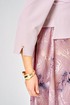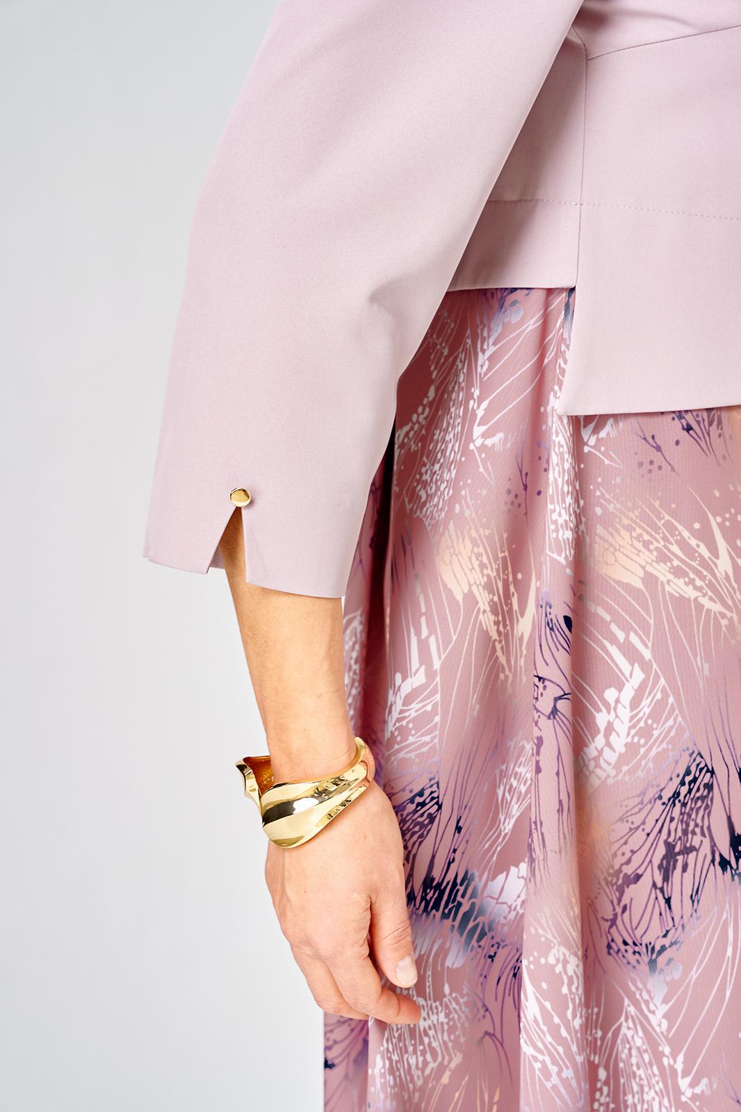 Лиф из плательной ткани, горловина круглая с декоративным элементом по центру, по низу лифа ответная складка, по переду низ асимметричный, рукава втачные, по низу декоративный элемент с пуговицей.