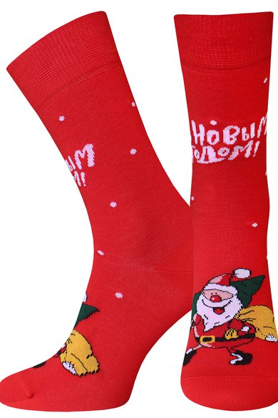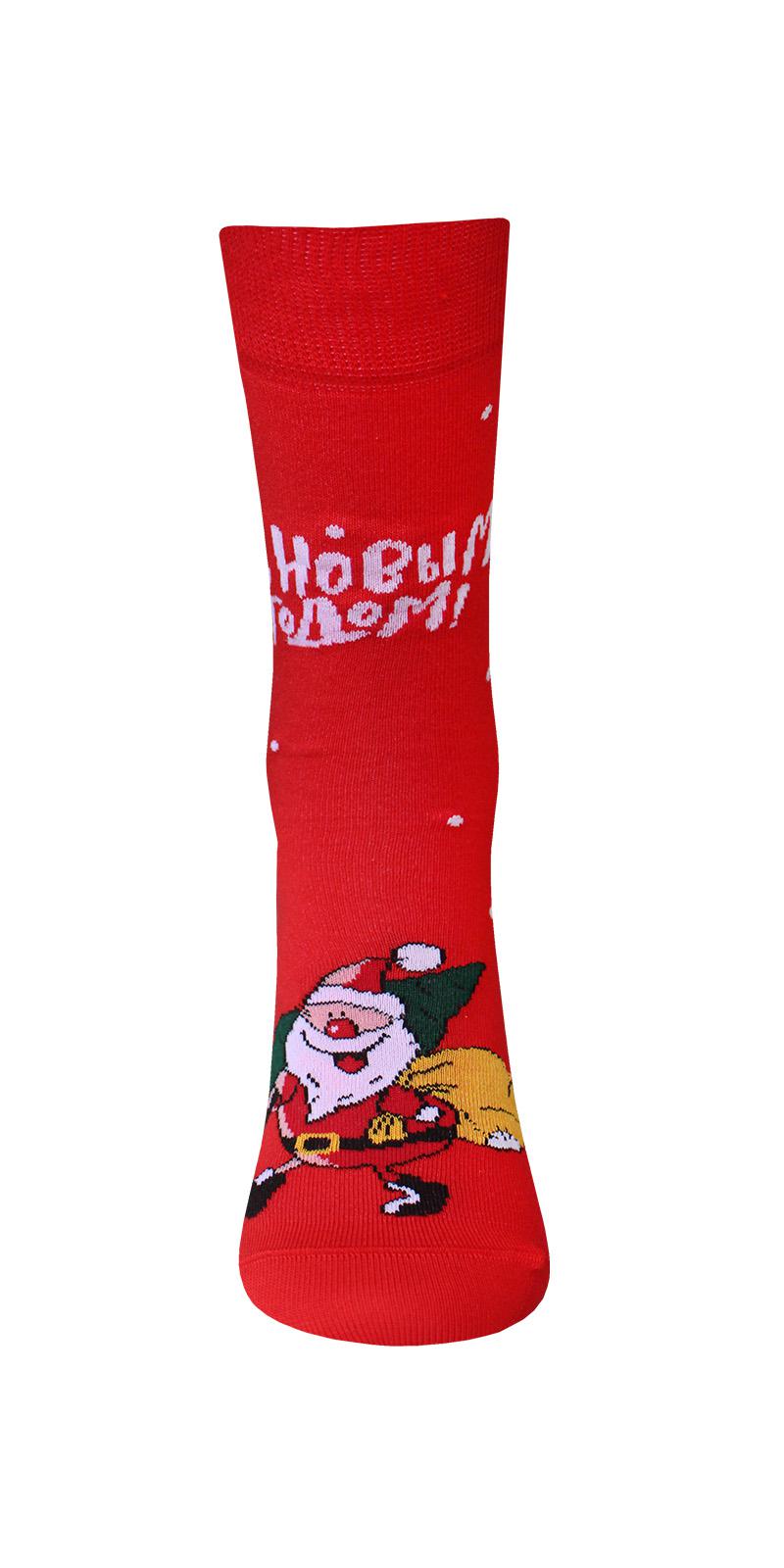 Мужские носки гладкие, средней длины, двойной борт, с Новогодним сюжетом.
