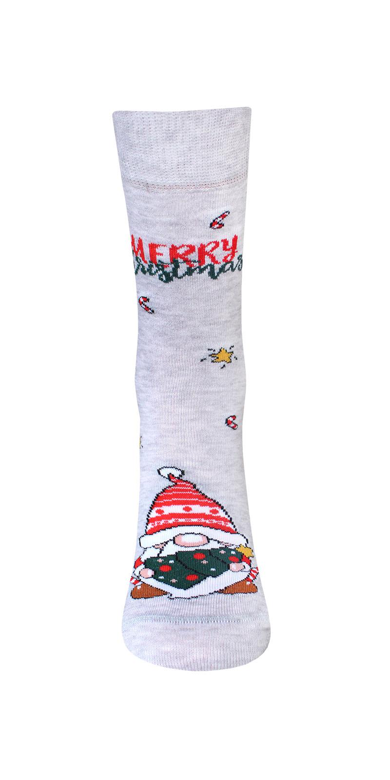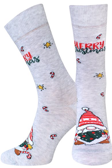 Мужские носки гладкие, средней длины, двойной борт, с Новогодним сюжетом.