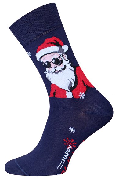Мужские носки гладкие, средней длины, двойной борт, с Новогодним сюжетом.