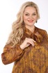 Горловина платья V-образной формы, воротник обработан стойкой, переходящей в бант. По полочке обработана кокетка, спинка цельная. Рукав втачной одношовный, низ рукава на резинке. Пояс в комплект не идет.