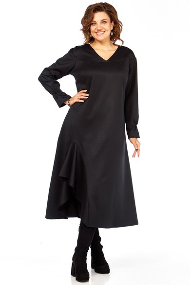 Это платье — прекрасный образец сочетания минимализма и авангардного дизайна, где классический силуэт преображается за счет одной яркой архитектурной детали. Главная изюминка - объемный волан - делает эту модель неповторимой. Вы будете выделяться, не нарушая дресс-кода.