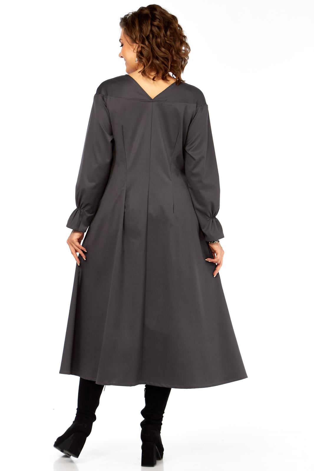 Свободный крой оверсайз и длина миди мастерски скрывают любые недостатки фигуры, даря абсолютный комфорт. Вертикальные выточки на спинке дополнительно вытягивают силуэт.