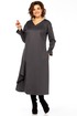 Благодаря ткани и глубокому цвету, платье идеально подходит для осенне-зимнего сезона. Оно легко трансформируется из делового наряда (с классическими лодочками) в вечерний образ (с массивными украшениями и ботильонами).