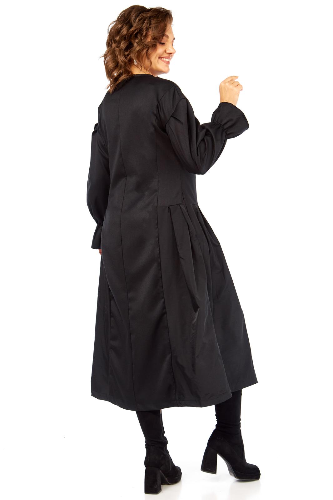 Силуэт свободный, прямой в верхней части, расширяющийся к низу за счет глубоких складок.