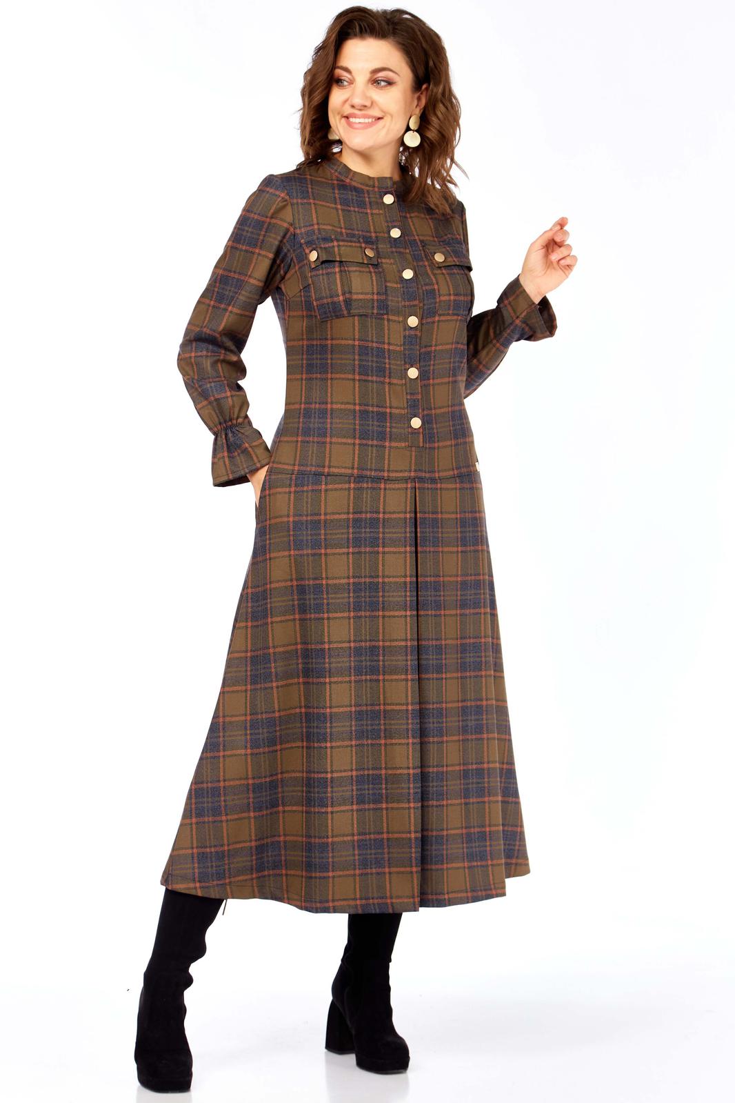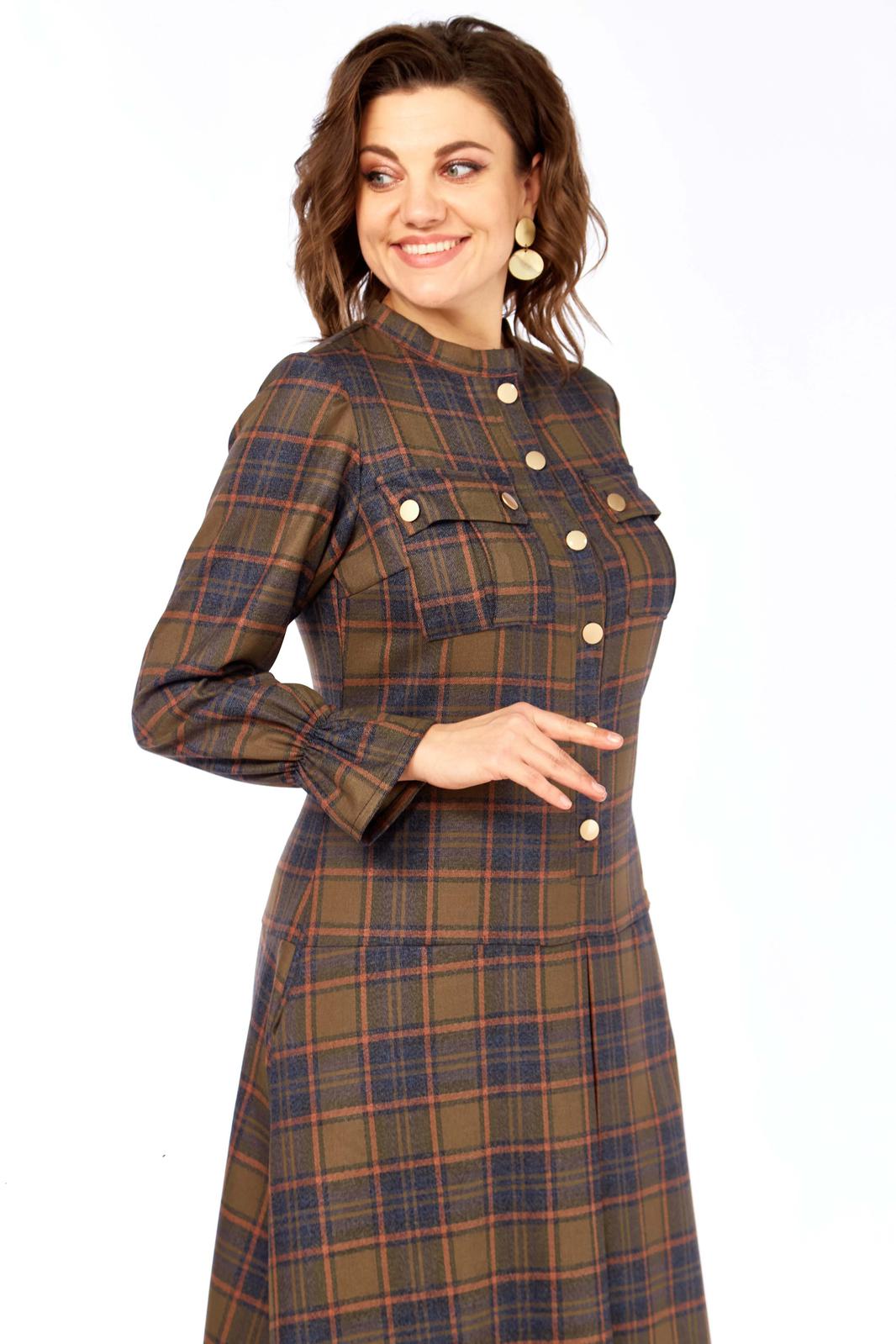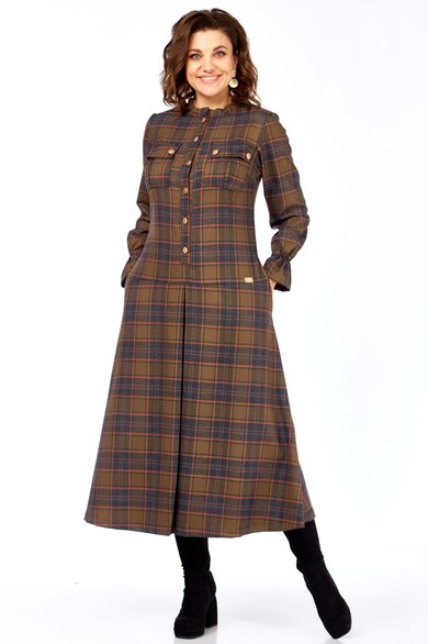 Образ излучает уверенность, яркость и индивидуальность. Это женщина, которая может быть одновременно строгой и очаровательной, энергичной и изысканной. Платье А- силуэта в клетку из качественной натуральной ткани (шерсть и хлопок) от Celentano.