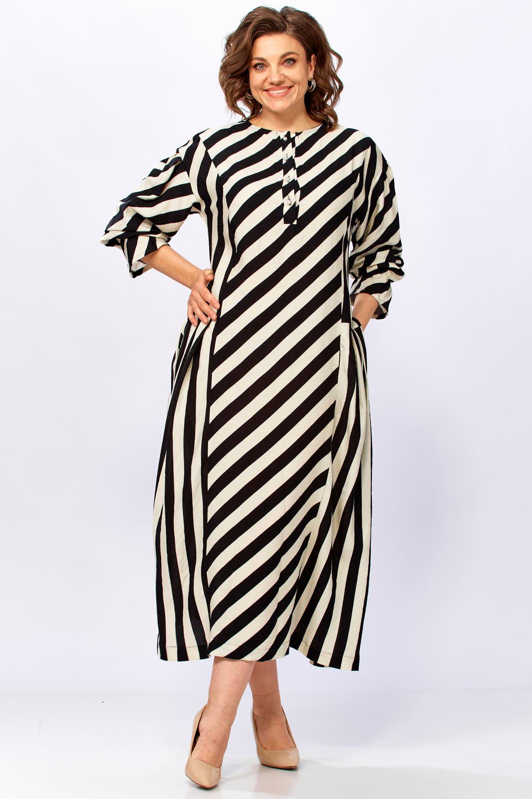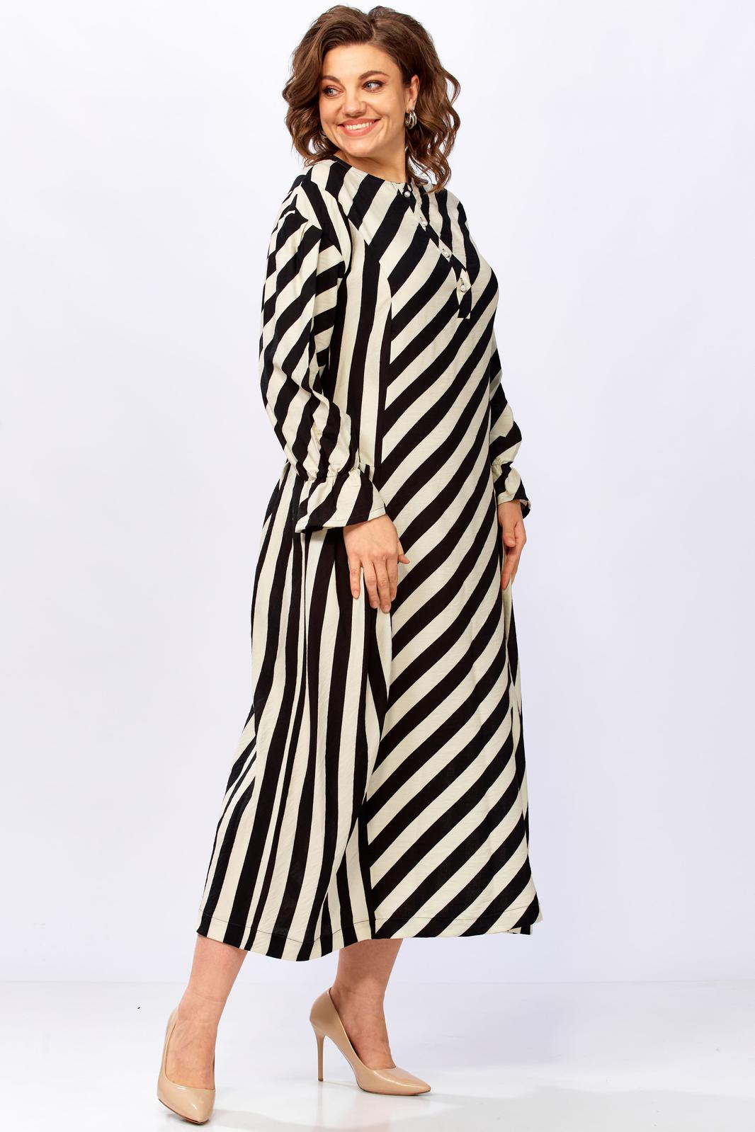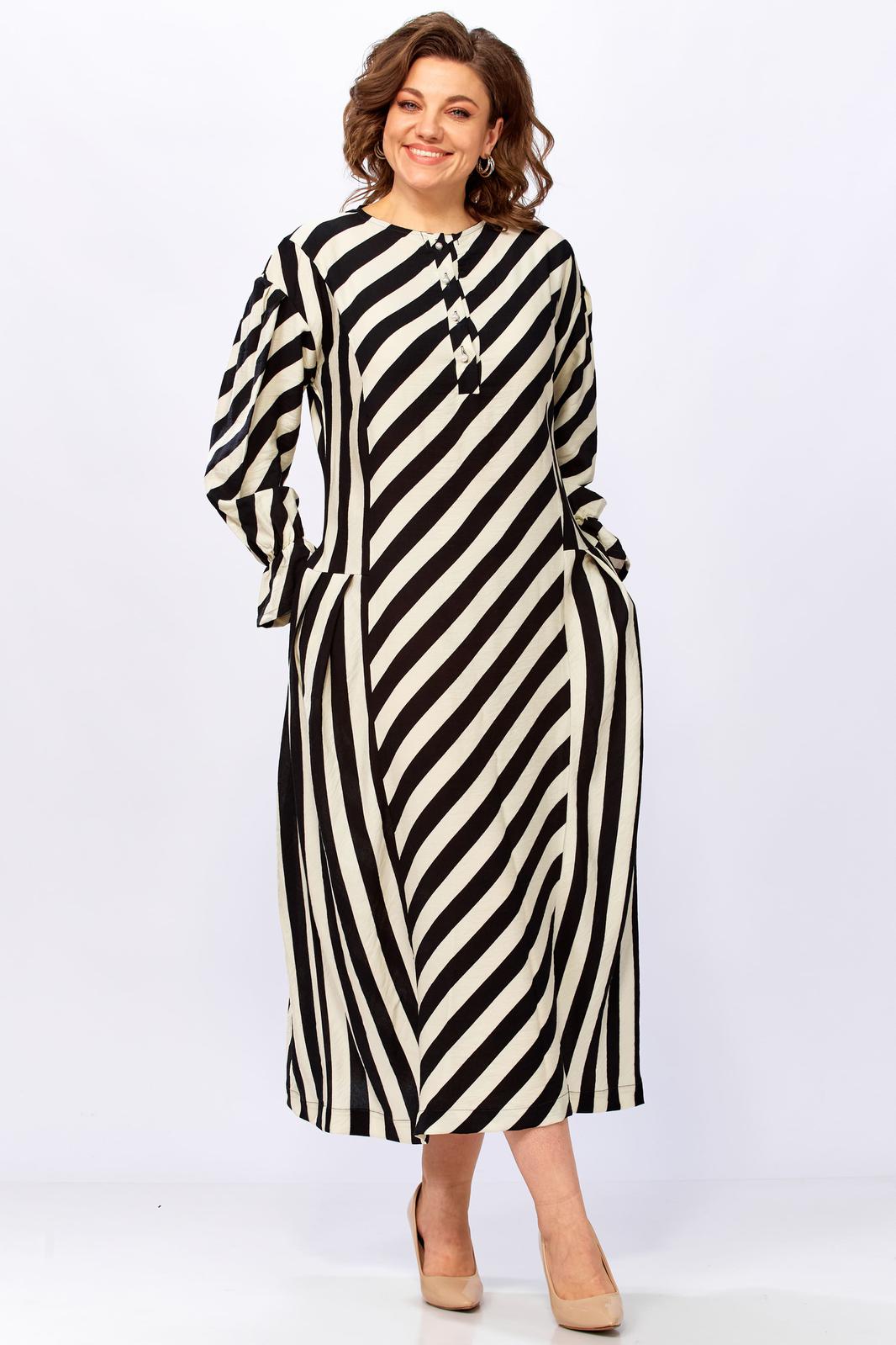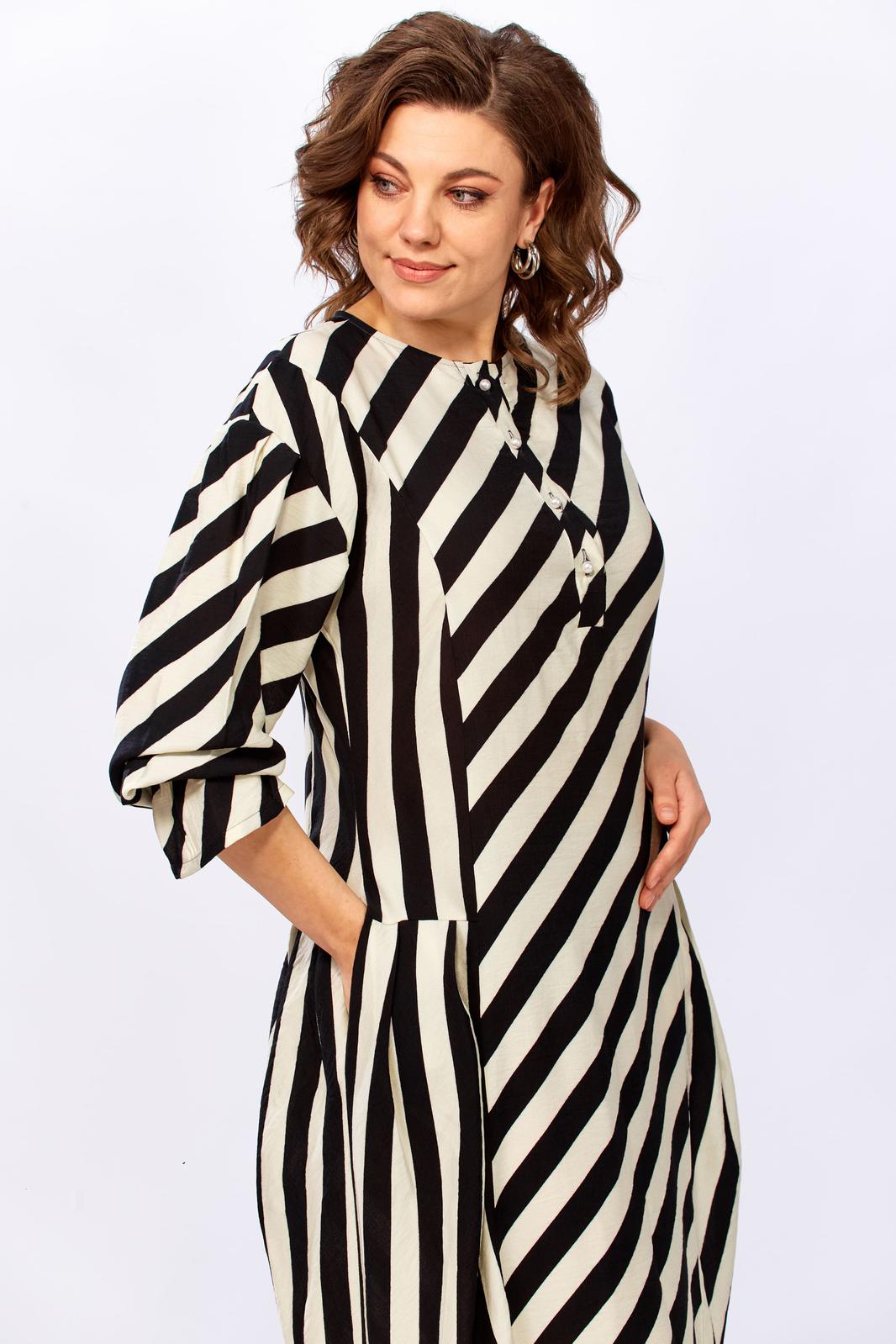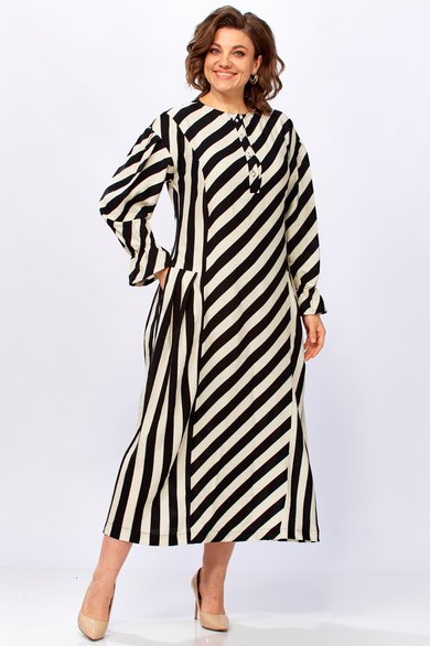 3. Для дам с формами: крой и направление полос мастерски моделируют гармоничный силуэт.