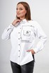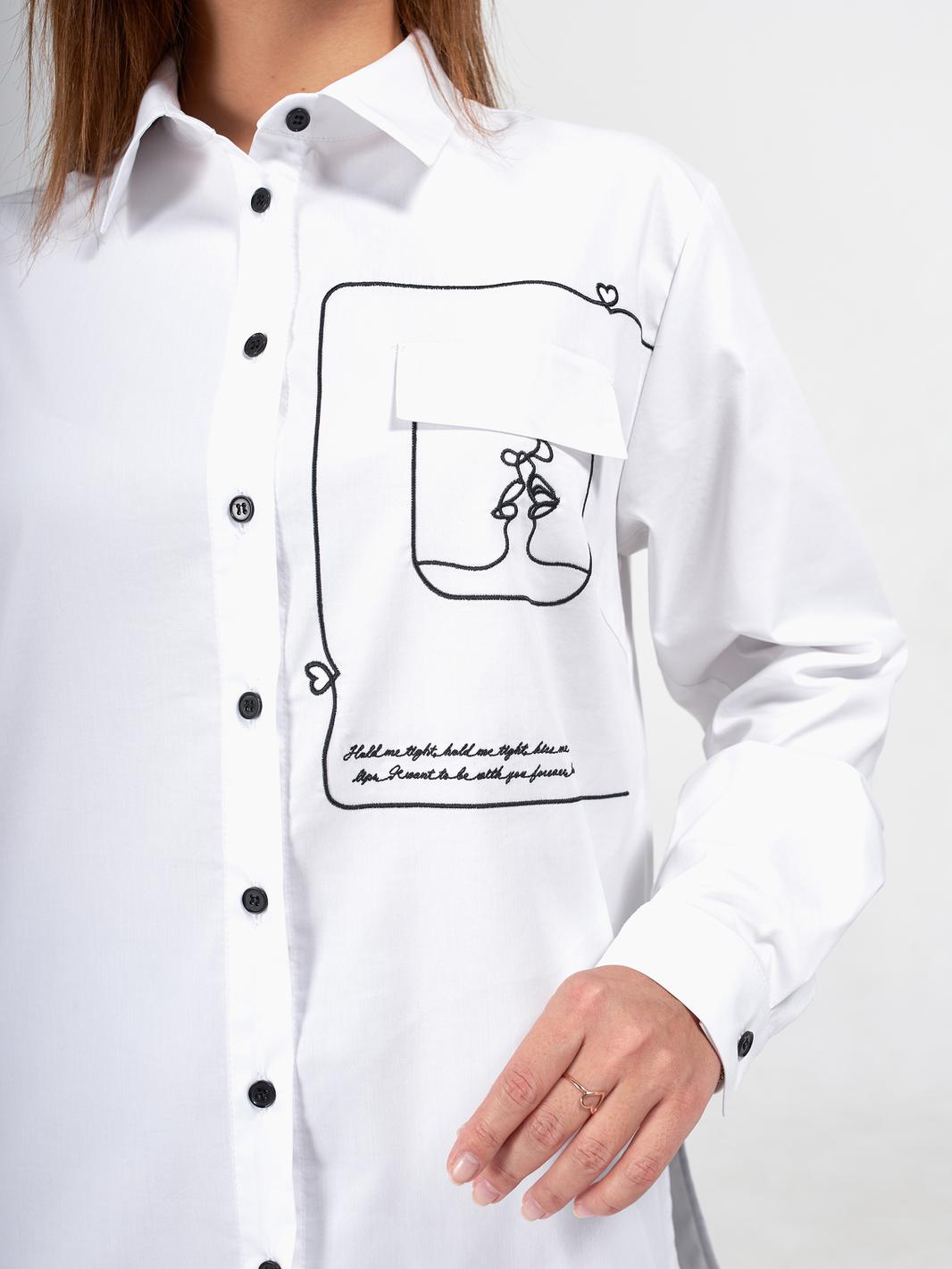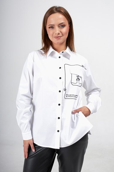 Блузка рубашка белая – идеальный выбор для офисного гардероба. Этот нарядный предмет одежды выполнен из высококачественного хлопка с добавлением эластана, обеспечивая комфорт и долговечность. Блузка имеет стильную вышивку на передней части, которая придает изделию элегантный вид. Вышивка имитирует карман с настрочным клапаном, что придает дополнительный интересный элемент дизайна. Блузка застегивается на пуговицы в цвет вышивки. Длинные рукава добавляют дополнительный шарм и подходят для любого сезона. Благодаря своей универсальности и стильности, эта рубашка станет отличным дополнением к вашему профессиональному образу.