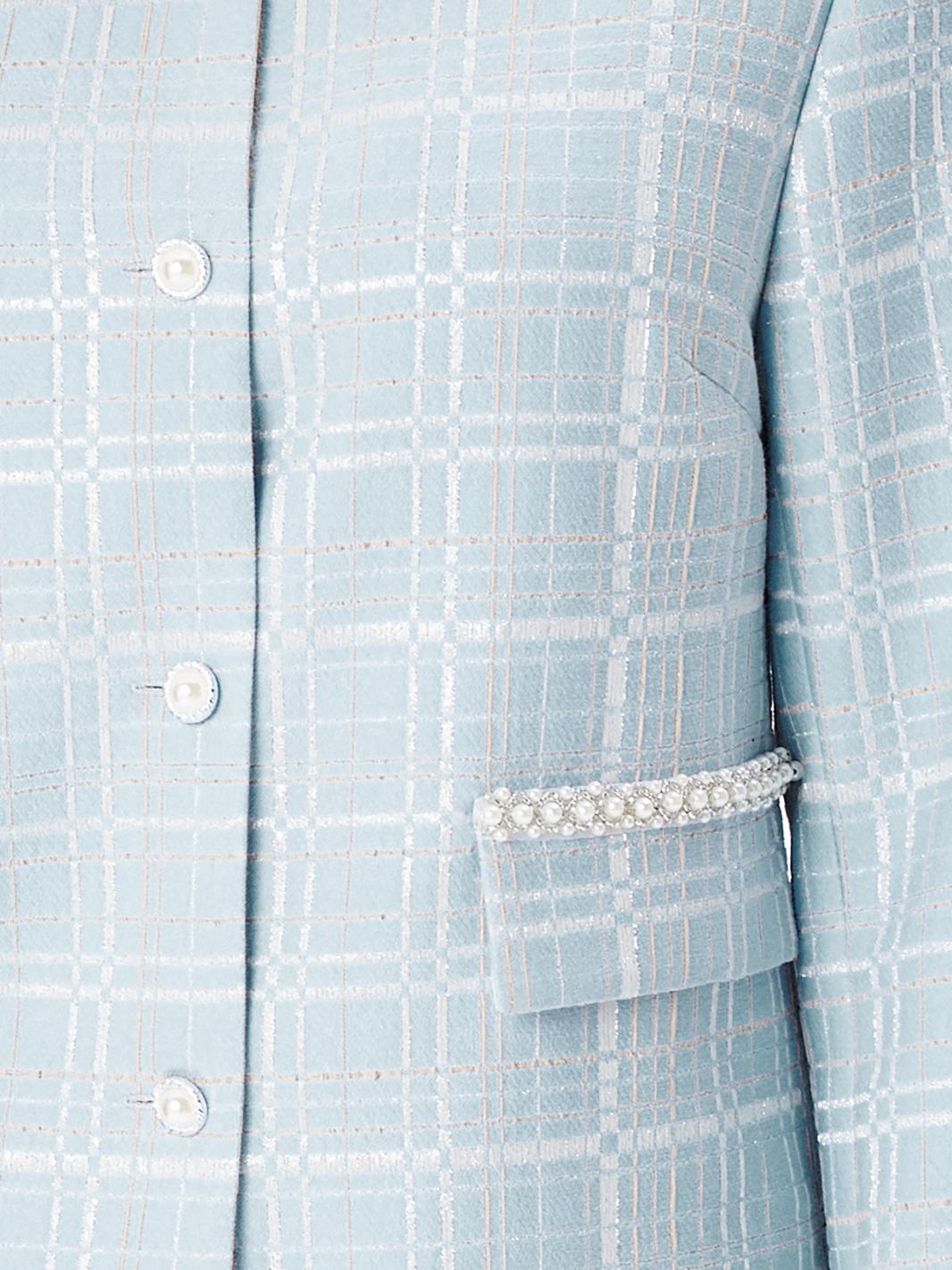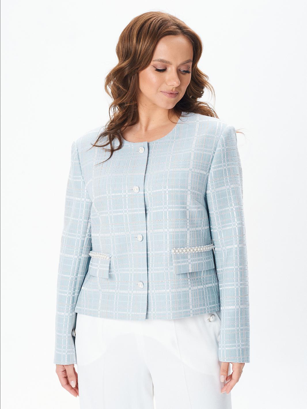 Этот элегантный жакет создан для тех, кто ценит стиль и изысканность. Его полуприлегающий силуэт и длинные рукава придают образу женственности и изящности. Жакет на подкладке обеспечивает комфорт и удобство при носке. Особое внимание привлекает отделочная тесьма с жемчужинами, которая украшает клапаны на карманах. Застежка на декоративные пуговицы с жемчужиной добавляет жакету особый шарм и изысканность, делая его идеальным вариантом для особых случаев и торжественных мероприятий. Этот жакет станет отличным дополнением к вашему образу, подчеркнув ваш безупречный вкус и стиль.