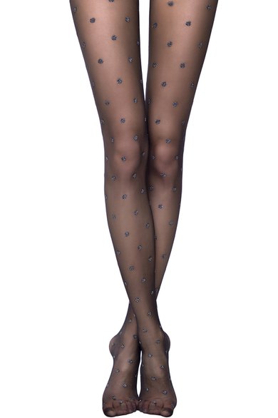 Изюминка колготок – нити люрекса, благодаря которым рисунок «в горошек» приобретает легкое сияние.