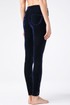Леггинсы женские облегающие c боковыми швами. По переду изделия - имитация гульфика и боковых карманов. По задней части леггинсов - кокетки и накладные карманы. Боковые швы, гульфик, имитация боковых карманов переда, накладные карманы, кокетки задней части и шов сидения с двумя рядами отделочных строчек. Верх изделия обработан широким поясом с широкой резинкой внутри. Шов притачивания пояса с отделочной строчкой.