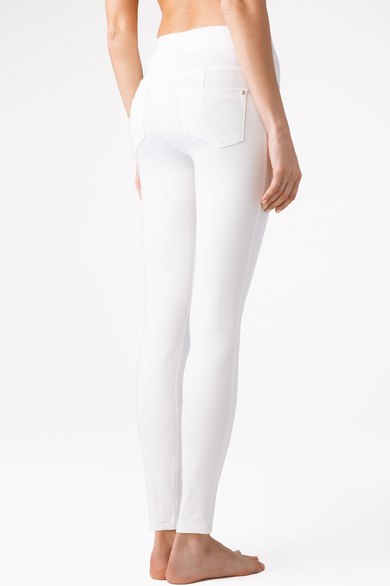 Моделирующие джеггинсы с высокой посадкой, сзади накладные карманы.
