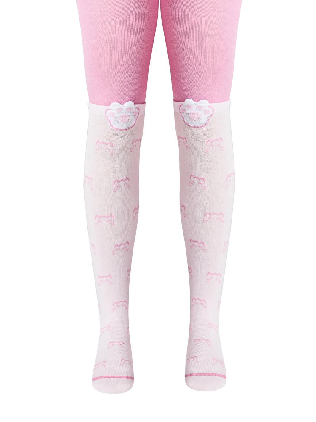 Мягкие эластичные удобные и практичные детские колготки из хлопка, с рисунками-мордашками и декоративными элементами на ножках .