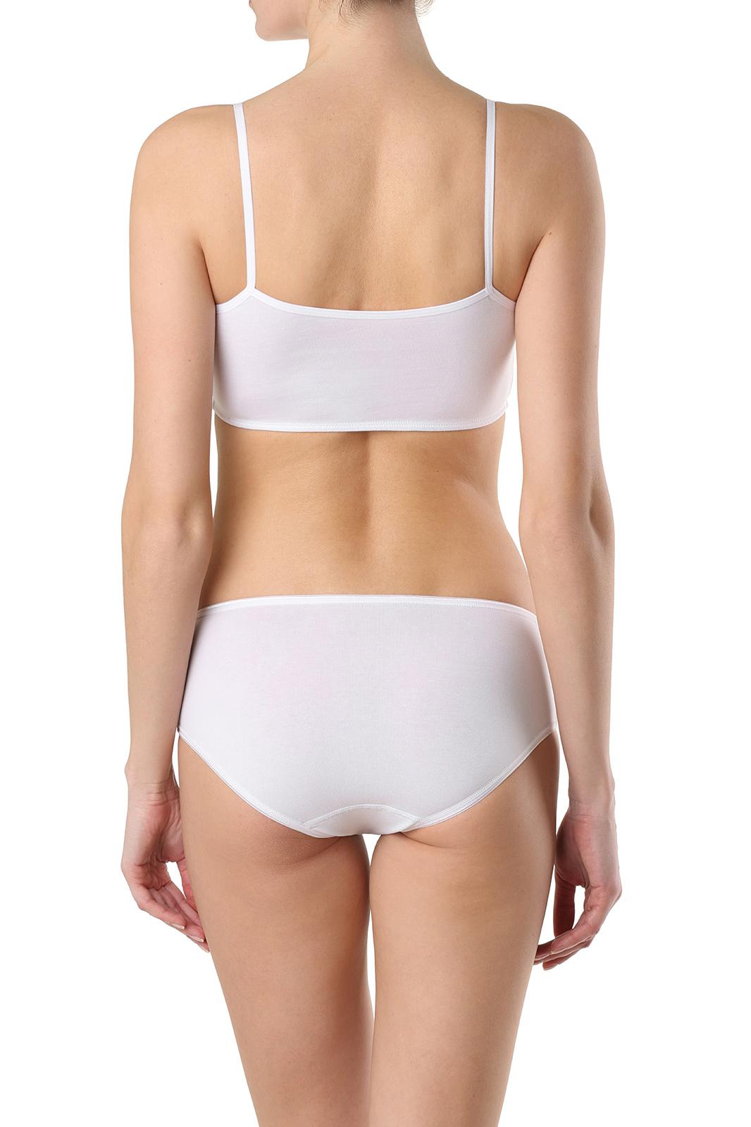 Бюстье женское из эластичного трикотажного полотна. Горловина и проймы окантованы эластичной тесьмой переходящей в нерегулируемые бретели. Низ изделия обработан притачной эластичной тесьмой швом в подгибку.
