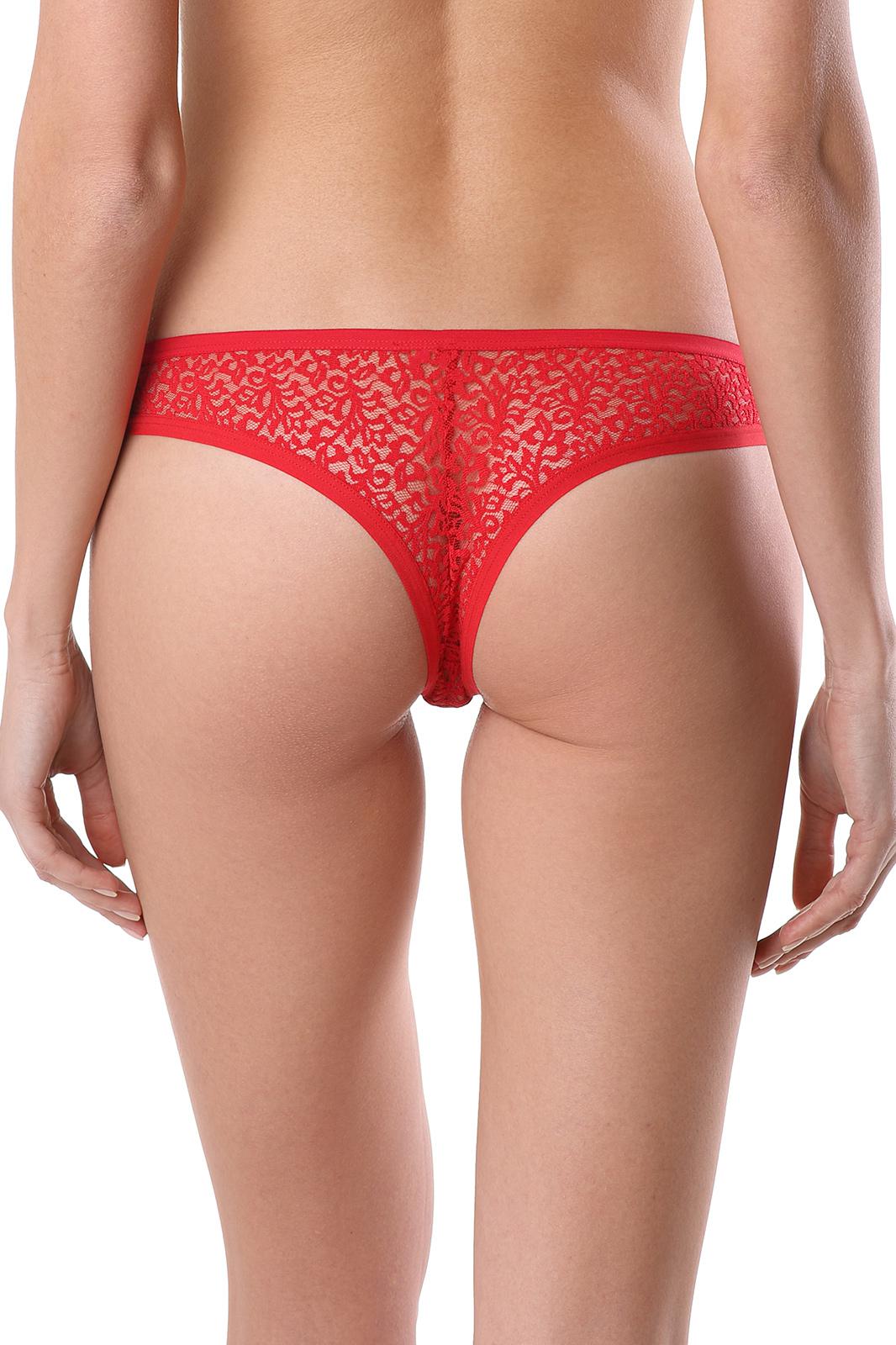 Трусы женские из эластичного кружевного полотна. Передняя деталь на подкладке из эластичного трикотажного полотна, подкладка ластовицы из х/б трикотажного полотна. Задняя деталь со средним швом. Верхний и нижние срезы обработаны эластичной тесьмой.