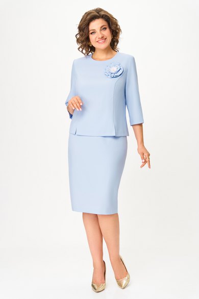 Костюм женский двух предметный, состоящий из блузки и юбки. Блузка прилегающего силуэта, с фигурными рельефами по переду и спинке. Спереди внизу в рельефах обработаны разрезы. По спинке застежка на «молнию» по среднему шву. Рукав в точной, одношовный, длиной ¾. Юбка прямого силуэта, зауженная к низу, длиной за колено. По переду- таллиевые выточки. По заднему полотнищу-таллиевые вытачки, средний шов с застежкой на «молнию» и шлицей внизу. Притачной пояс сзади с резинкой и застежкой на петлю и пуговицу. Декором модели служит украшение в виде цветка7055.2 костюм женский двух предметный, состоящий из блузки и юбки. Блузка прилегающего силуэта, с фигурными рельефами по переду и спинке. Спереди внизу в рельефах обработаны разрезы. По спинке застежка на «молнию» по среднему шву. Рукав в точной, одношовный, длиной ¾. Юбка прямого силуэта, зауженная к низу, длиной за колено. По переду- таллиевые выточки. По заднему полотнищу-таллиевые вытачки, средний шов с застежкой на «молнию» и шлицей внизу. Притачной пояс сзади с резинкой и застежкой на петлю и пуговицу. Декором модели служит украшение в виде цветка