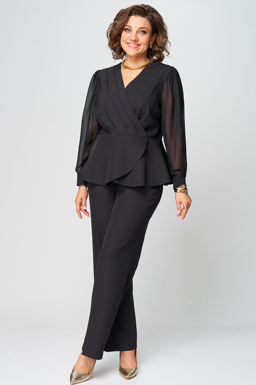 Супер-функциональный нарядный комплект, который состоит из нарядной блузки и брюк. Блузка – универсальная вещь в гардеробе женщины. Необычайно женственна, столь же переменчива и привлекательно вписывается в образ прекрасной дамы блузка с запахом. Стилисты ценят этот предмет одежды за то, что в его силах создавать множество эффектных луков, начиная от повседневных и заканчивая вечерними. В модели скомбинированы две фактуры ткани. Наша блуза с объемными шифоновыми рукавами на манжетах. Модель приталенного силуэта. Запах образует на блузке V-образный вырез, который хорошо подчеркивает шею, несколько удлиняет ее, делая линию плеча более узкой, а фигуру в целом – стройнее. Кроме того, за счет запаха талия визуально сужается и силуэт становится более приближенным к идеальной фигуре – песочные часы. Такой верх можно успешно сочетать с брюками, юбками, шортами, формируя образ деловой романтичной, активной и утончённой дамы.