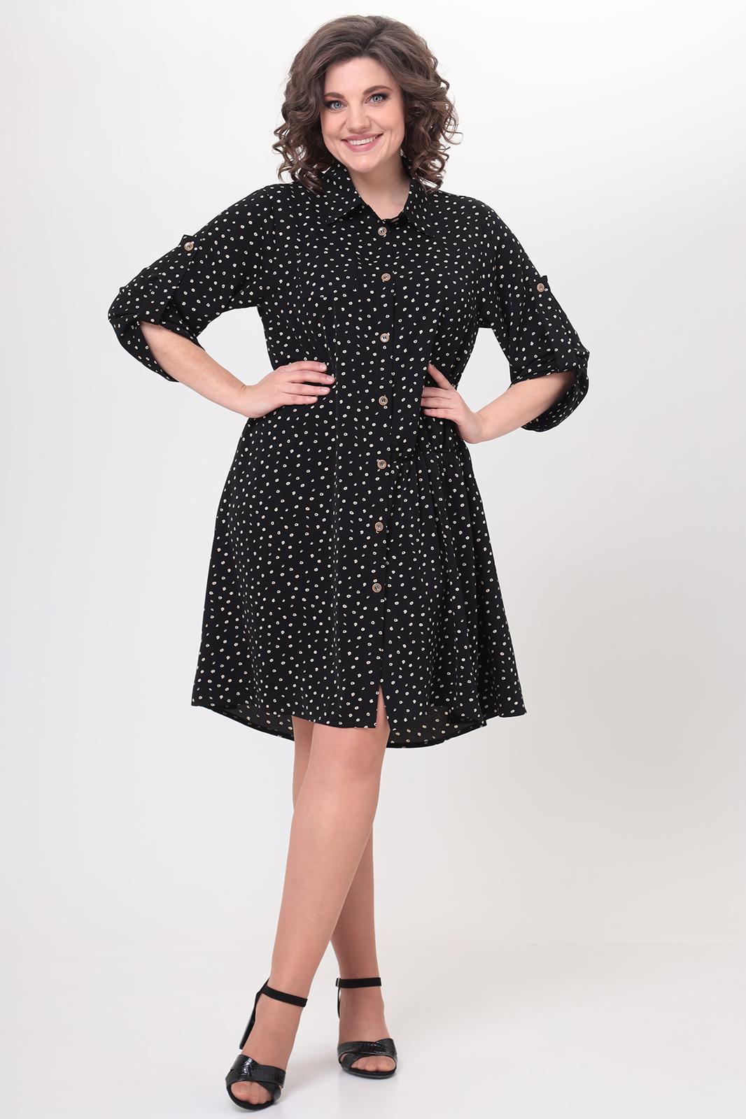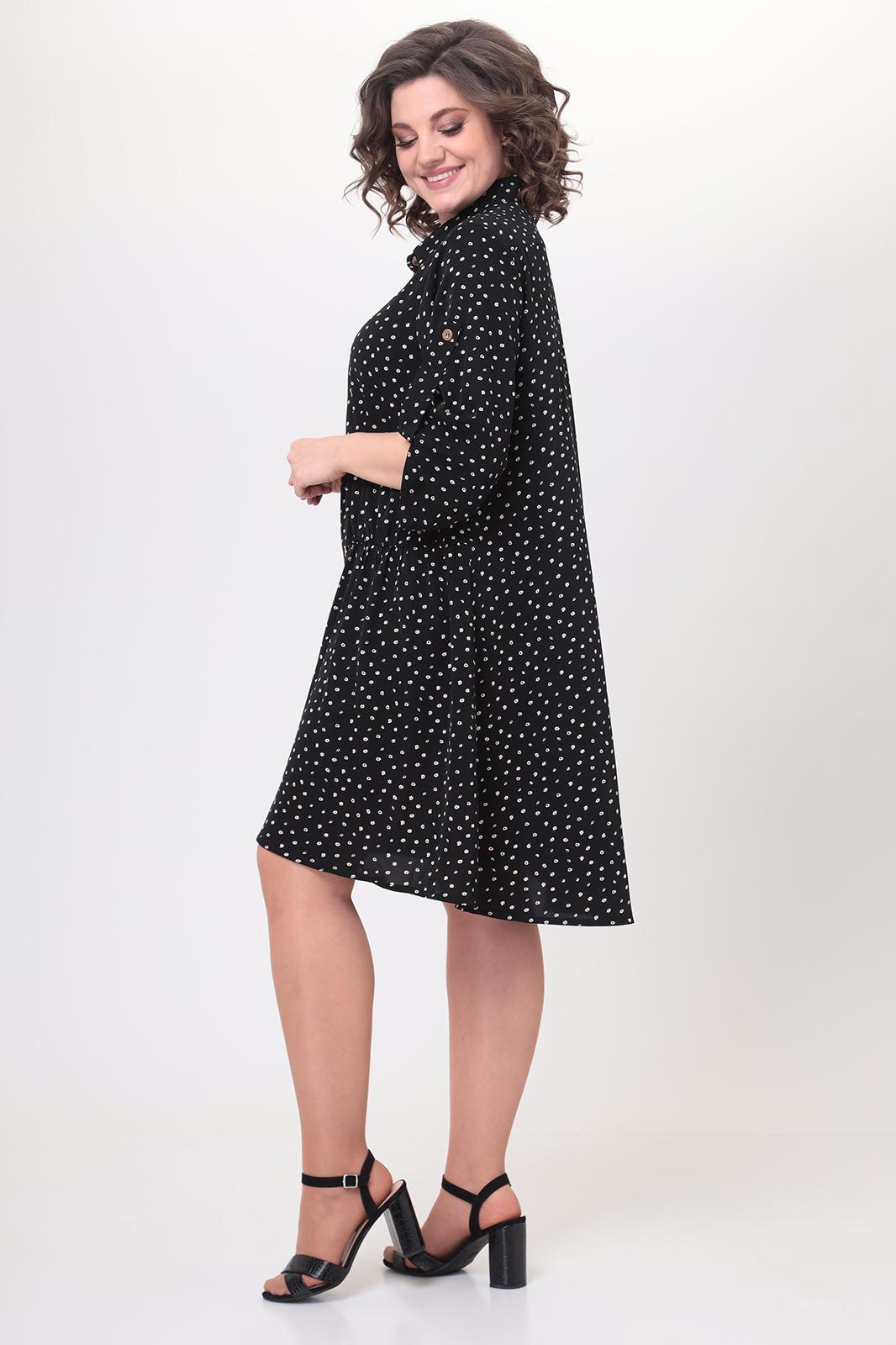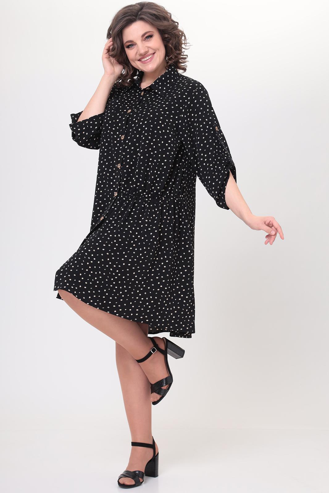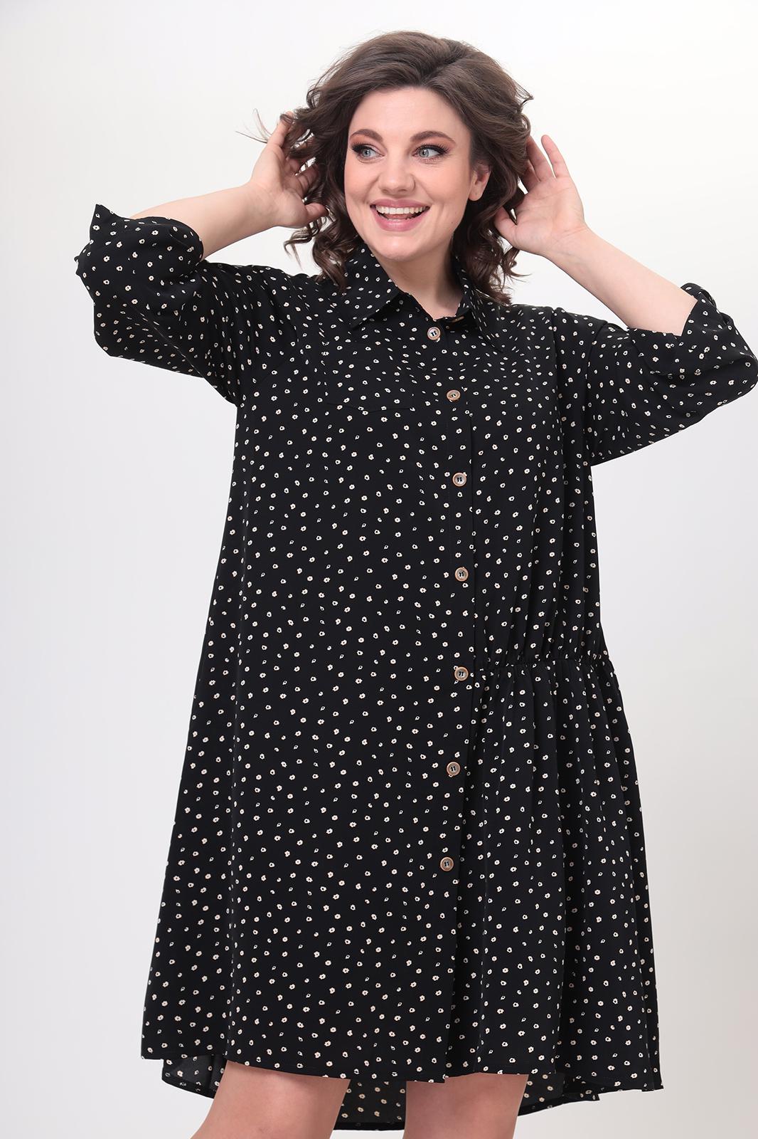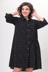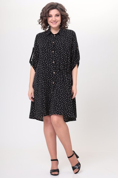 Чёрный - самый универсальный и классический цвет, в зависимости от подобранного ансамбля, платья могут быть как гламурно-нарядными, так и строгими повседневными и даже спортивно-расслабленными, в духе casual. Эффектное платье в стиле оверсайз из изумительной ткани микро-креп с содержанием эластана трапециевидного силуэта, в меру свободное и очень комфортное. Горловина с втачным воротником-стойкой классической формы, по переду выполнены центральные планки с застежкой на петли-пуговицы по всей длине изделия. Левая полочка с отрезной частью чуть ниже линии талии, по линии шва притачивания выполнена лёгкая сборка в качестве декора. Спинка цельная с притачной кокеткой вверху. Низ изделия разноуровневый: длина спинки чуть удлинена по отношению к переду. Линия плеча приспущена, рукав втачной одношовный, длиной 3/4 с притачной патой и застежкой на петлю-пуговицу, что позволяет регулировать длину рукава. Приятный струящийся материал искусно обыгрывает силуэт, а стиль оверсайз создаёт не только удобство, но и помогает в некоторой степени создать расслабленный образ.