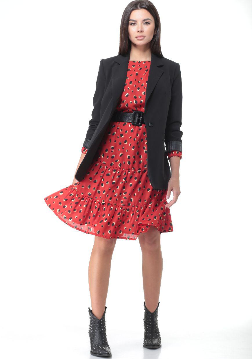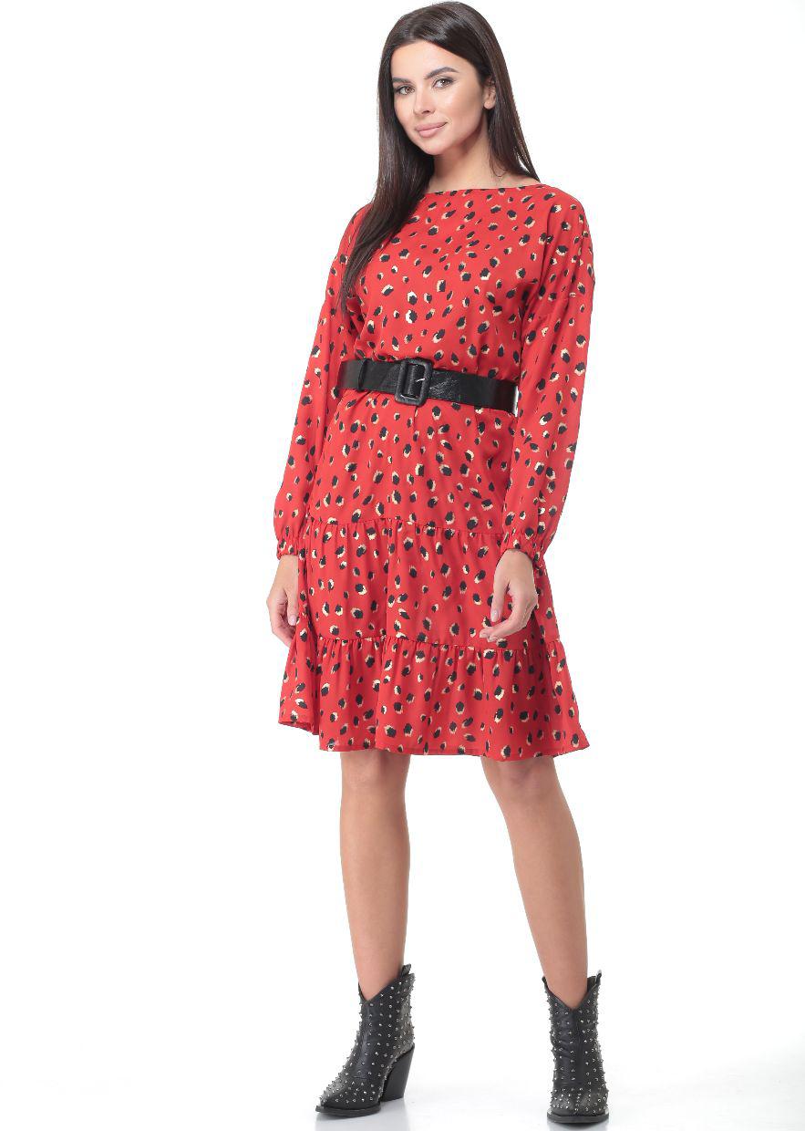 Летящее платье свободного силуэта с двумя воланами на «сборке». Горловина «лодочка». Плечо спущено. Рукав длинный, по низу собран на эластичную тесьму «резинка». Платье без подкладки. Ткань непрозрачная. Съемный ремень входит в комплект.