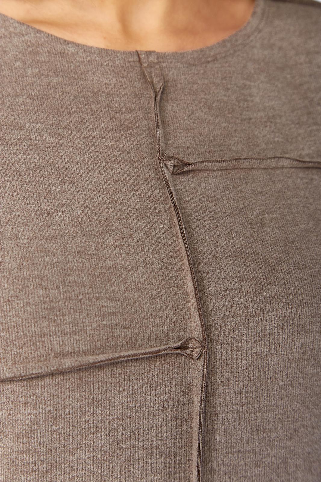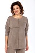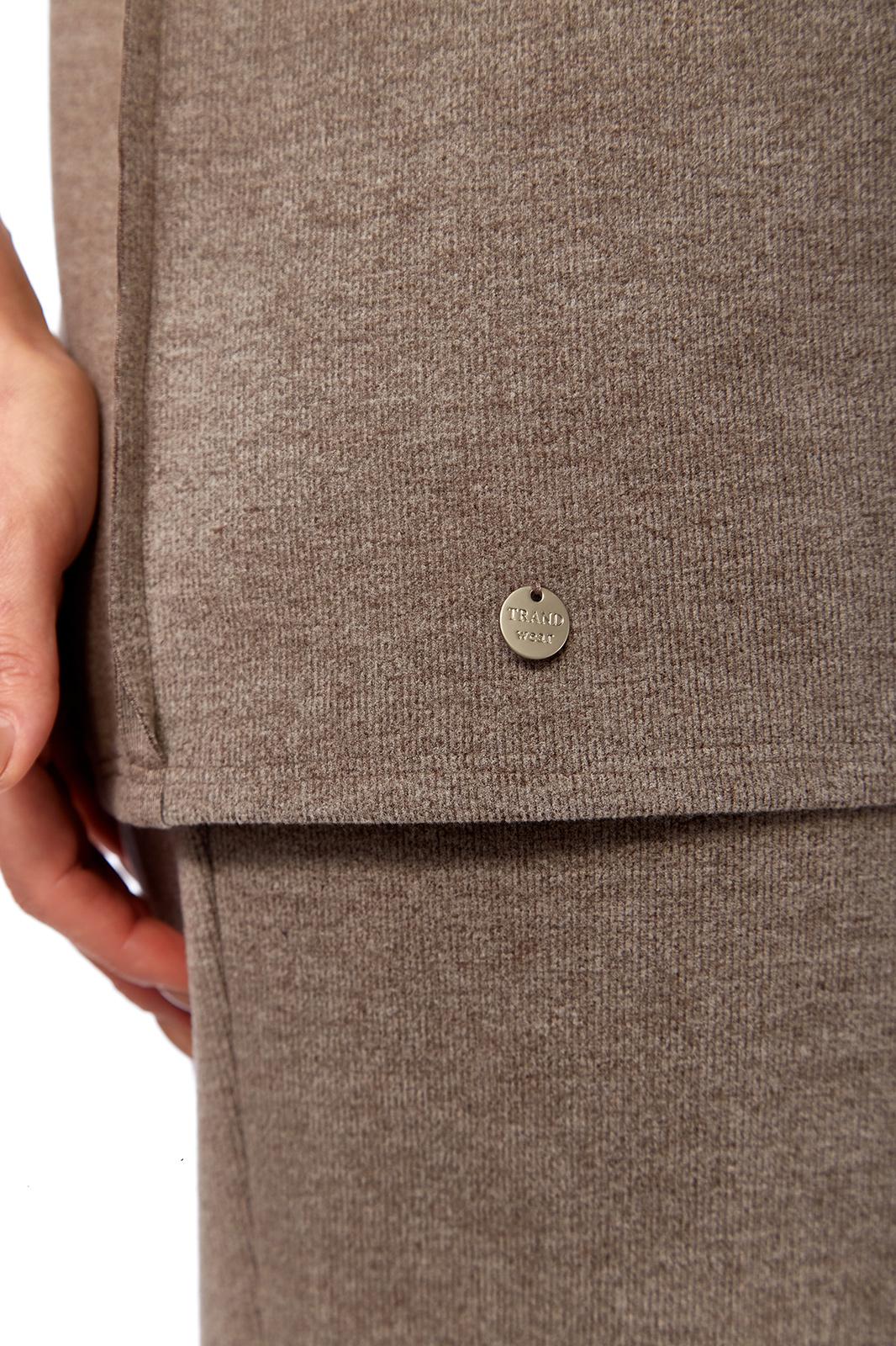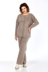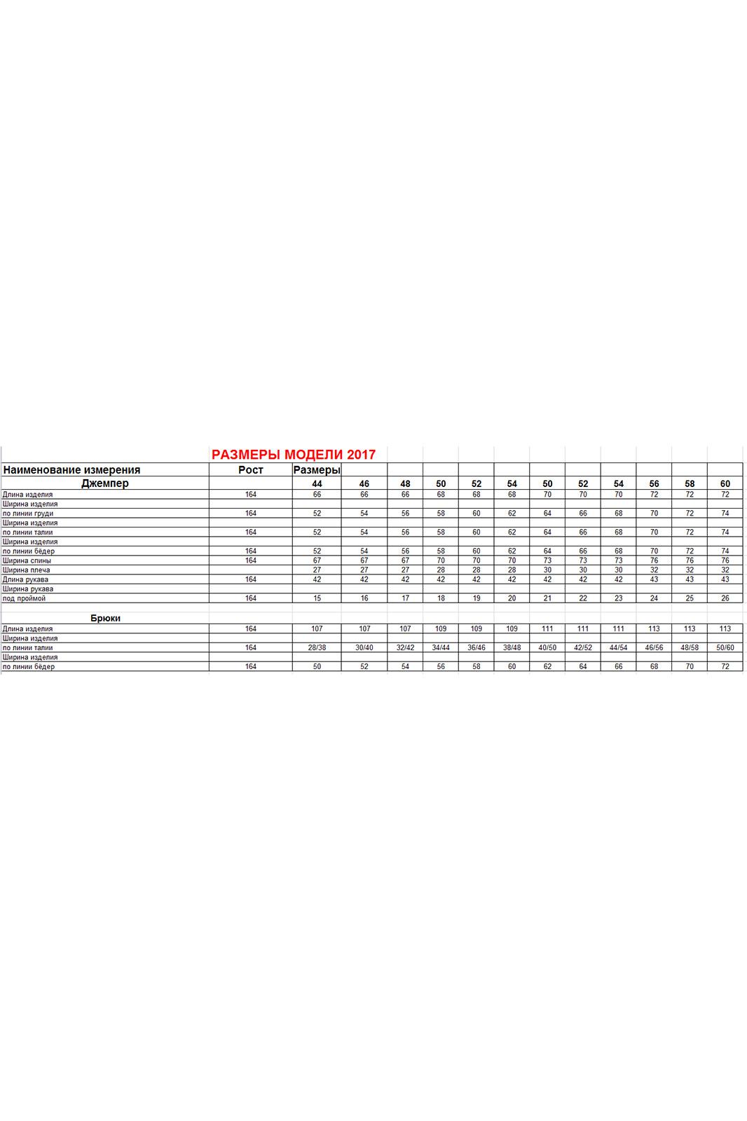 Комплект брючный : джемпер и брюки из трикотажного полотна. Джемпер с разрезными на 4 части передом и спинкой,швы обработаны припусками на лицо. Горловина округллой формы обработана распошивочным швом. Низ рукава и изделия тоже обработаны распошивочным швом. Брюки прямые. Цельнокроенный пояс на резинке.