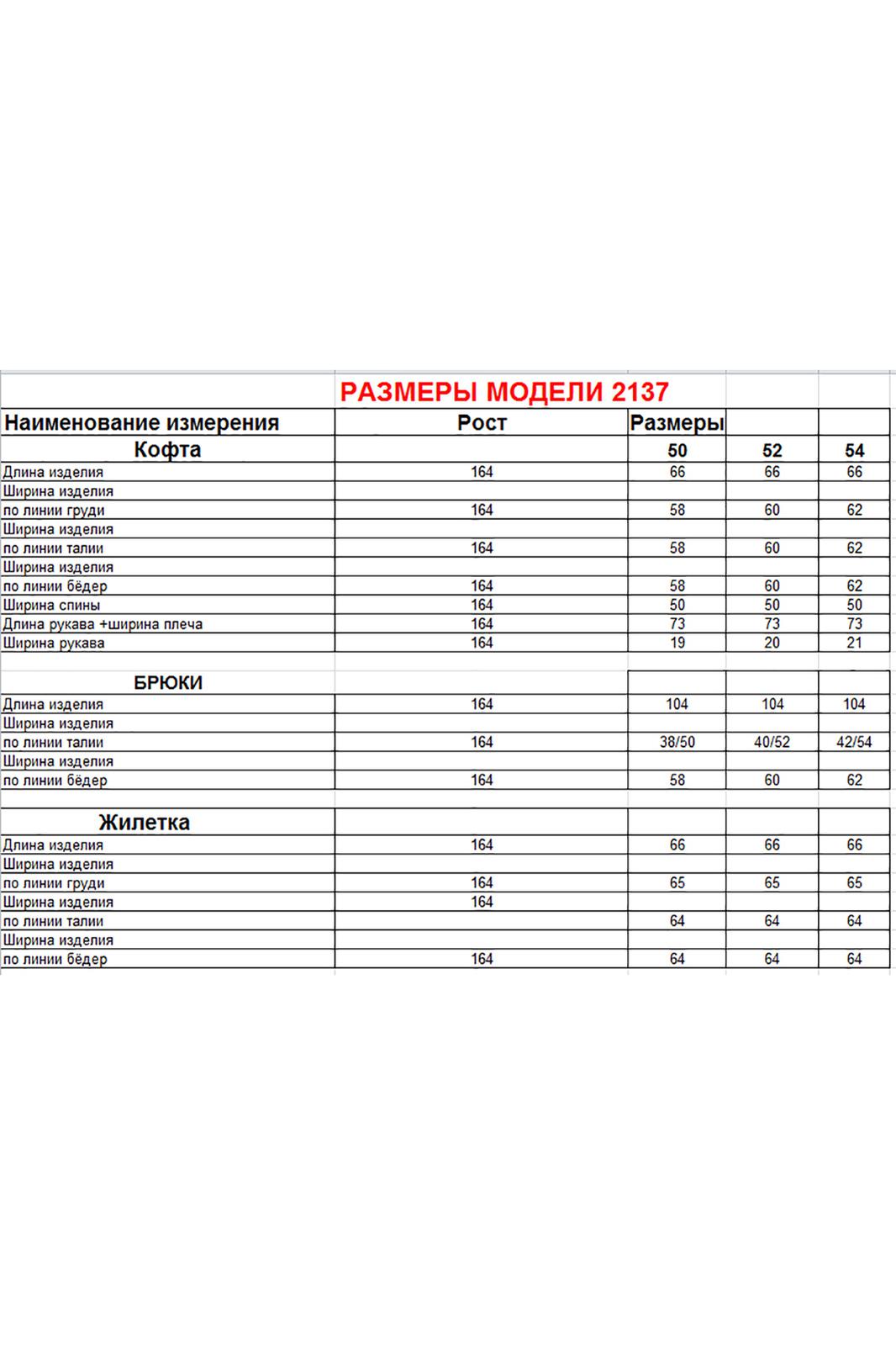 - Тип ткани: Кофта и брюки: вискоза 60%, пэ 40%. Жилетка: пэ 100%