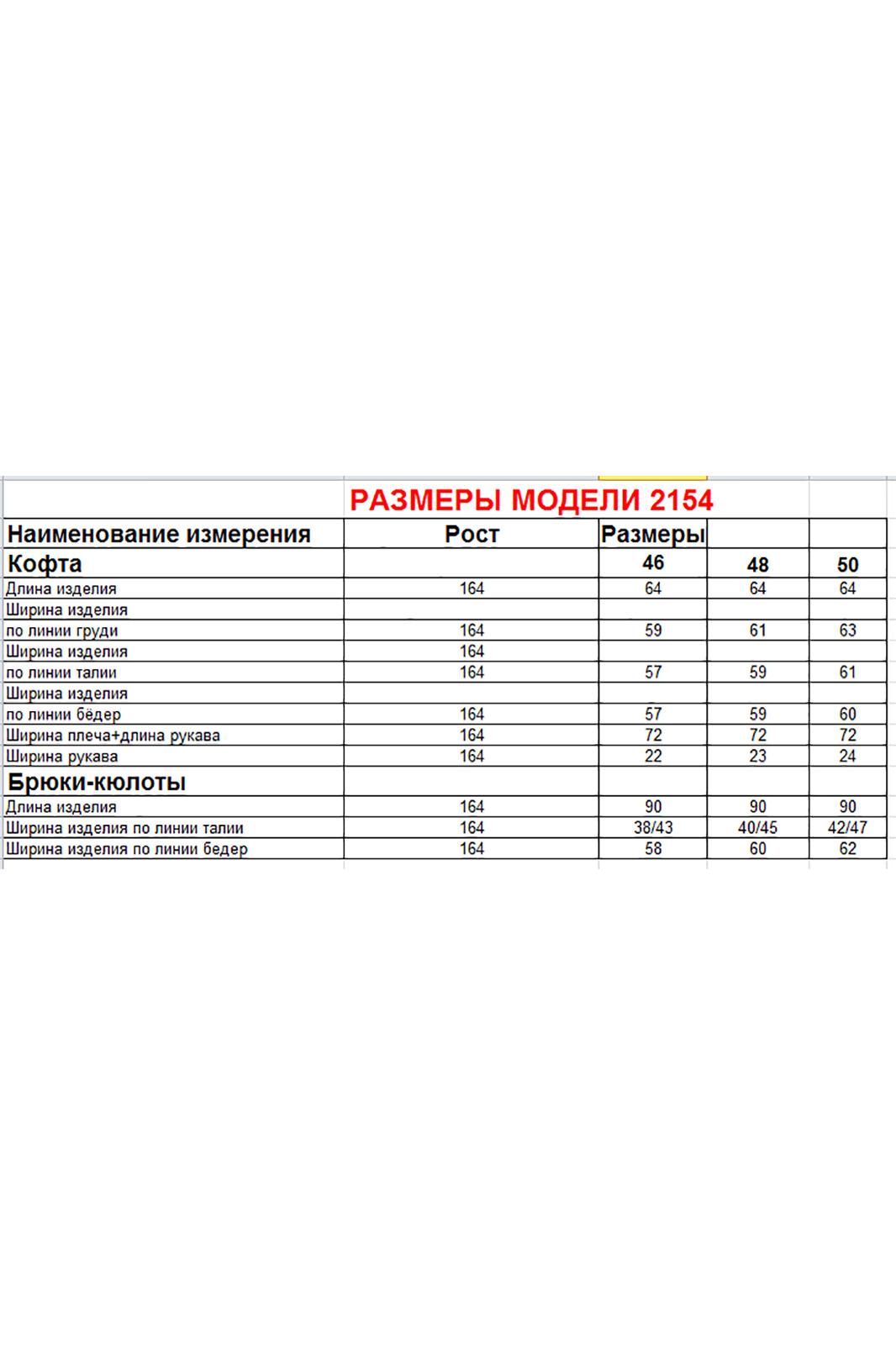 Длина по спинке 64 см, длина рукава +ширина плеча 72 см. Длина брюк-кюлот 90 см.