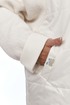 Стильная женская куртка, полуприлегающего силуэта с центральной застежкой на тесьму-молнию. По переду прорезные карманы с листочкой. Спущенная линия проймы. Рукав втачной одношовный из отделочной ткани, длинный с отворотом по низу. Капюшон с отделочной деталью по отлету, объемный. Куртка на подкладке. Используется основной материал -плащевка (плотность 70 гр/м2). В качестве отделки -теплая ткань с мягким ворсом. Утеплитель Hoopon (плостность 150 г/м2). Подходит под температурный режим до -5 градусов. Для отделки используется фурнитура и отделочная строчка
