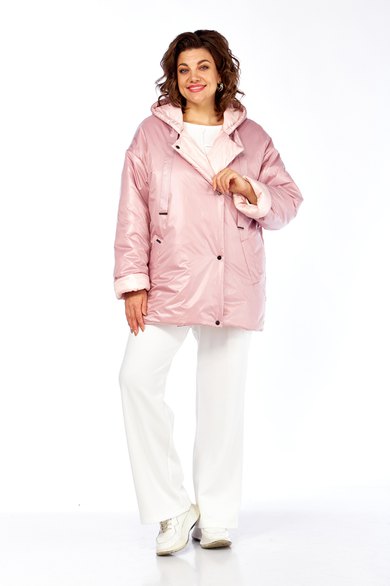 Куртка женская двухсторонняя с центральной бортовой застежкой на кнопки. Спинка простая. Перед с боковыми карманами с одной стороны с листочкой, а внутренняя сторона с карманами в боковых швах. Рукав втачной одношовный со спущенной линией плеча. Воротник-капюшон с кулисой. Есть пояс на резинке с застежкой на пряжку. Куртка утепленная. Температурный режим до - 10 градусов. Фурнитура может отличаться от заявленной на фото.