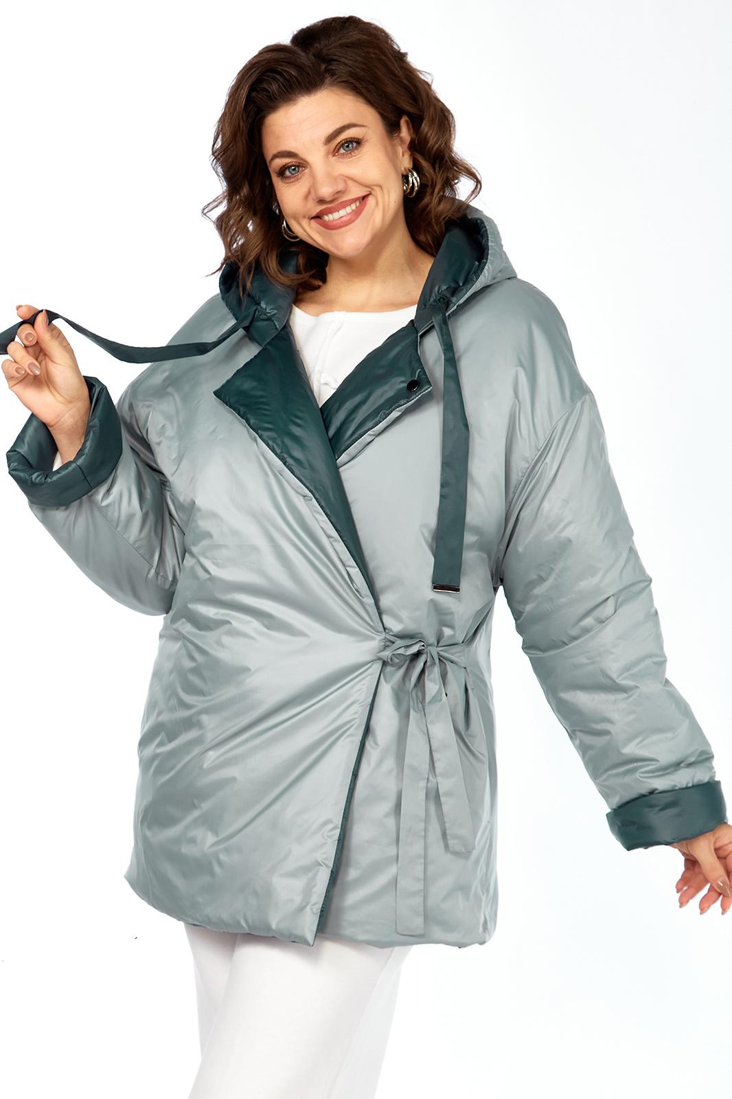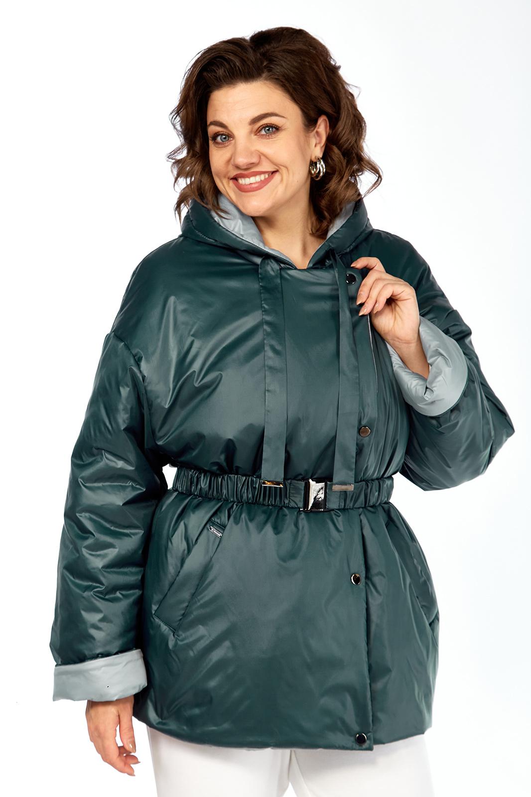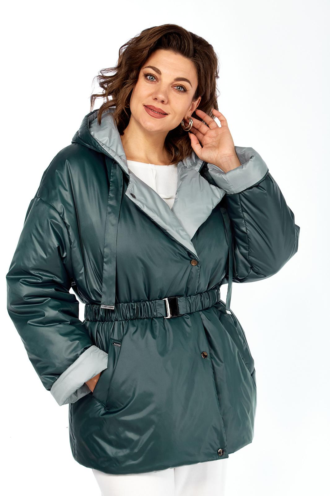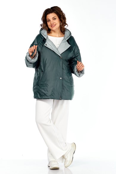 Куртка женская двухсторонняя с центральной бортовой застежкой на кнопки. Спинка простая. Перед с боковыми карманами с одной стороны с листочкой, а внутренняя сторона с карманами в боковых швах. Рукав втачной одношовный со спущенной линией плеча. Воротник-капюшон с кулисой. Есть пояс на резинке с застежкой на пряжку. Куртка утепленная. Температурный режим до - 10 градусов. Фурнитура может отличаться от заявленной на фото.