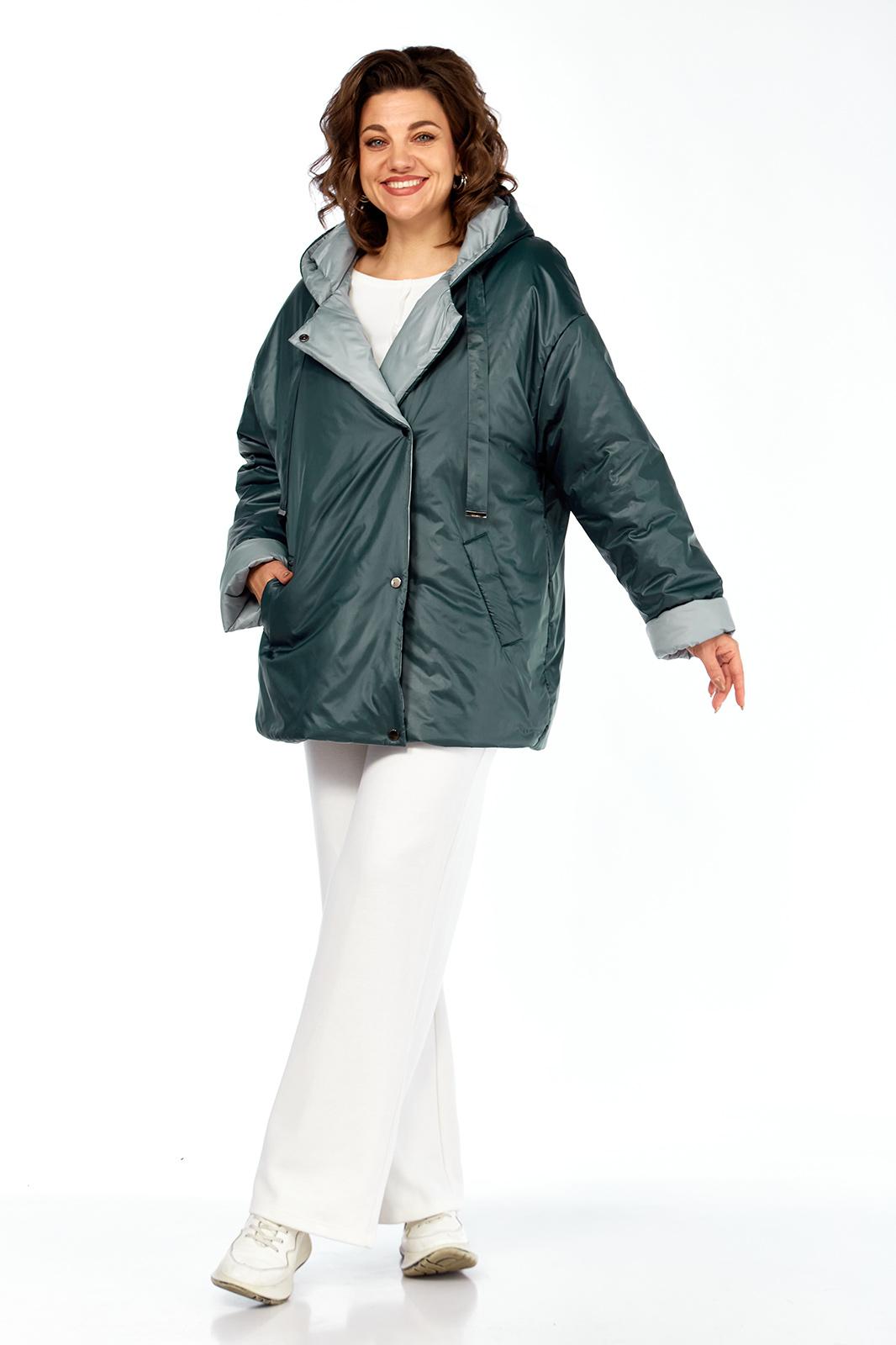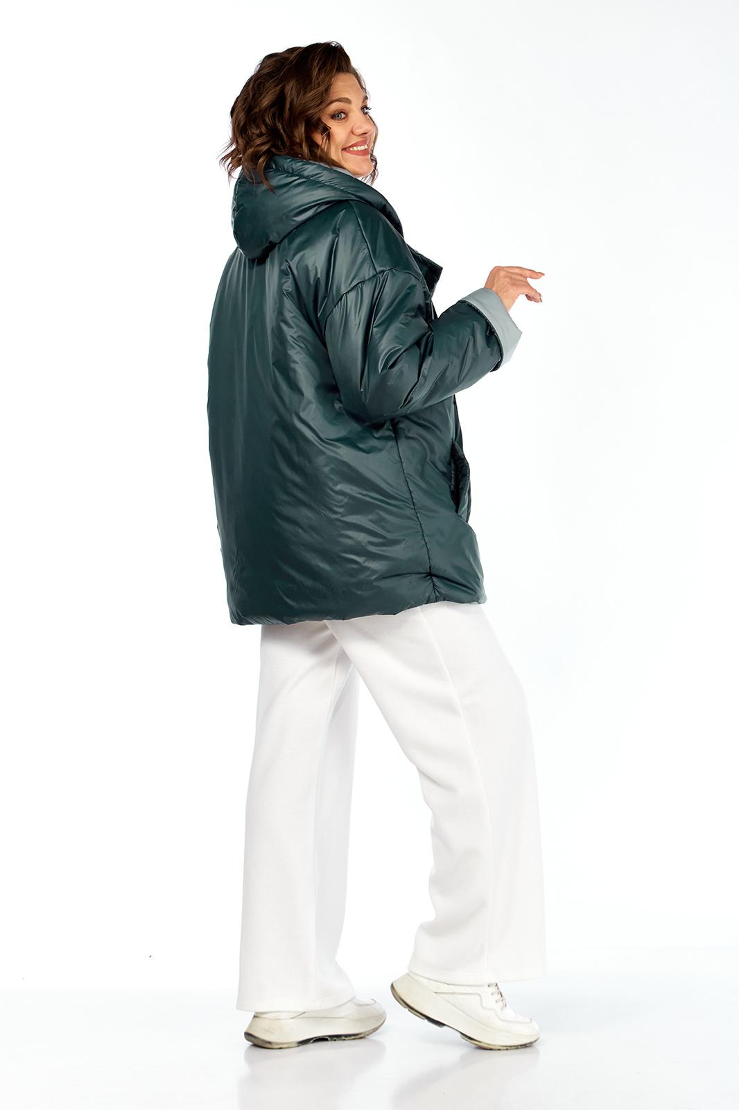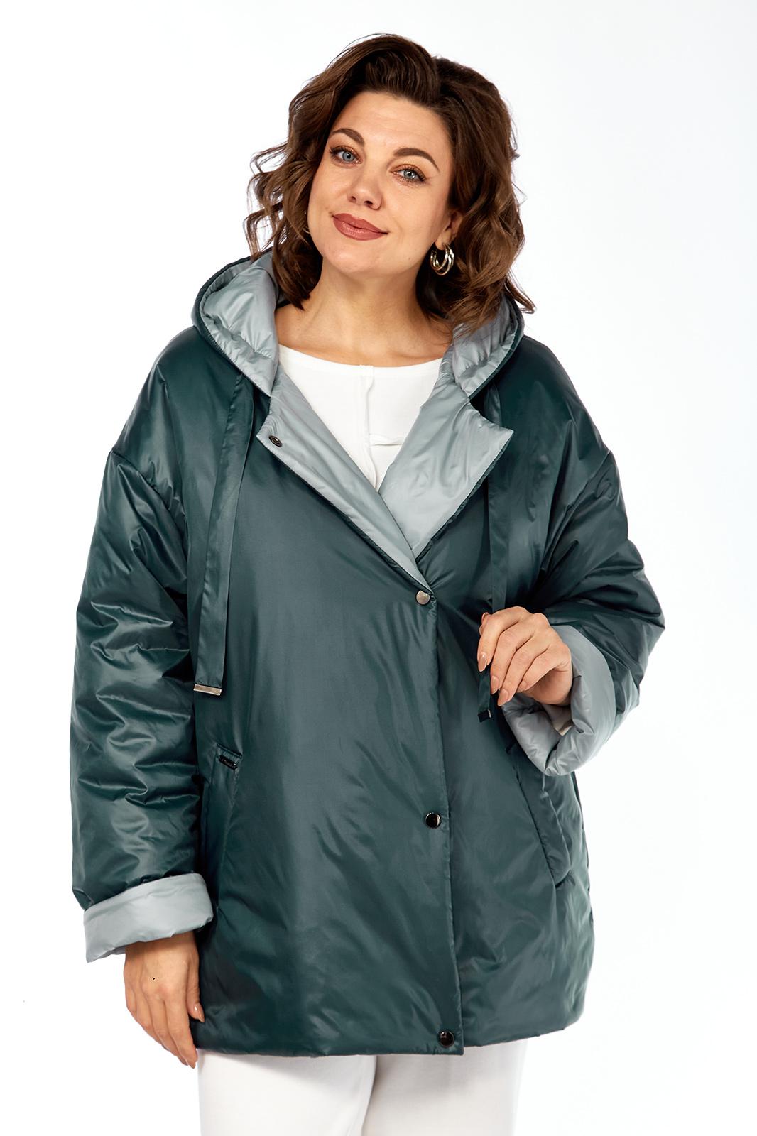 Куртка женская двухсторонняя с центральной бортовой застежкой на кнопки. Спинка простая. Перед с боковыми карманами с одной стороны с листочкой, а внутренняя сторона с карманами в боковых швах. Рукав втачной одношовный со спущенной линией плеча. Воротник-капюшон с кулисой. Есть пояс на резинке с застежкой на пряжку. Куртка утепленная. Температурный режим до - 10 градусов. Фурнитура может отличаться от заявленной на фото.
