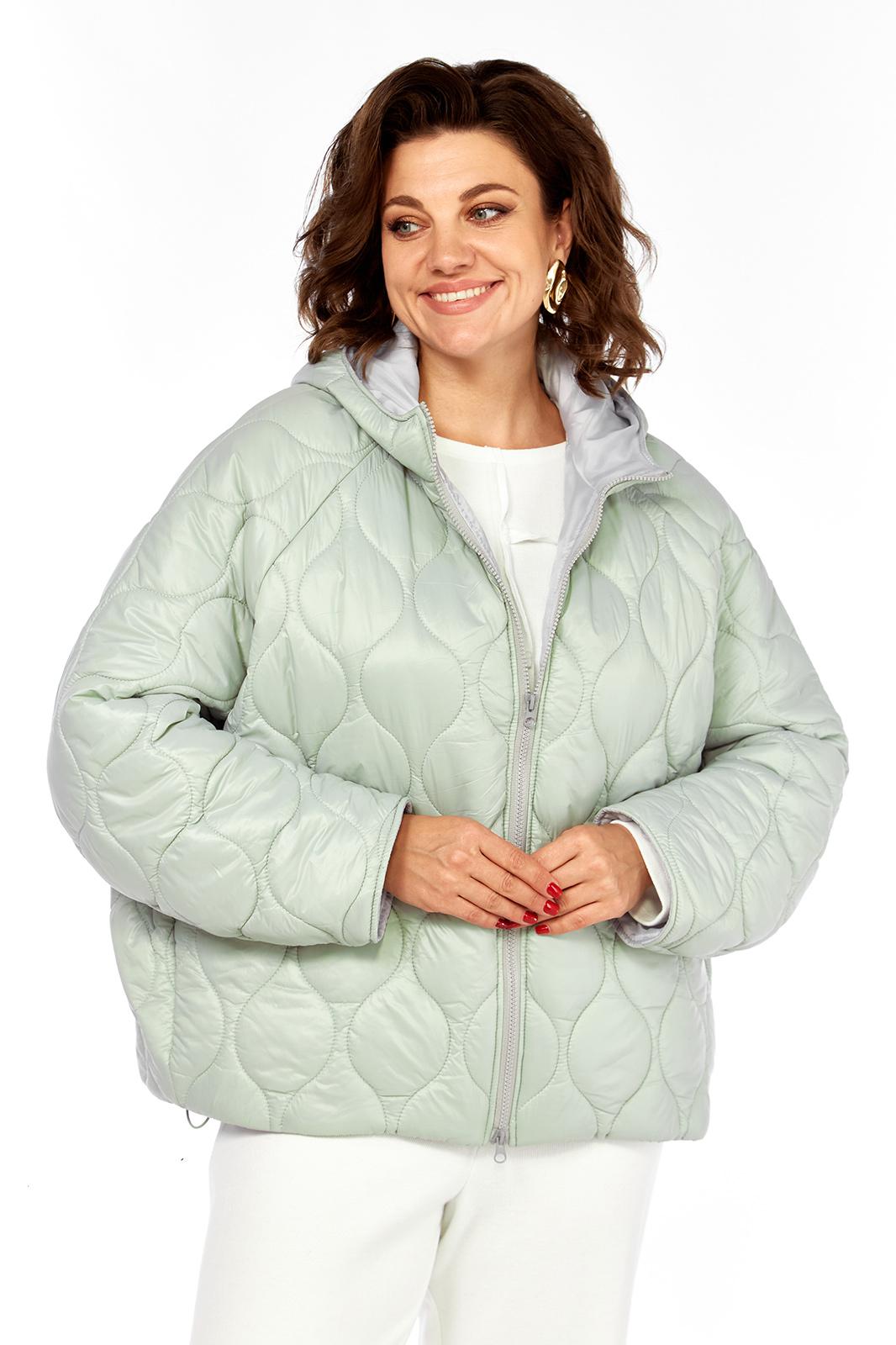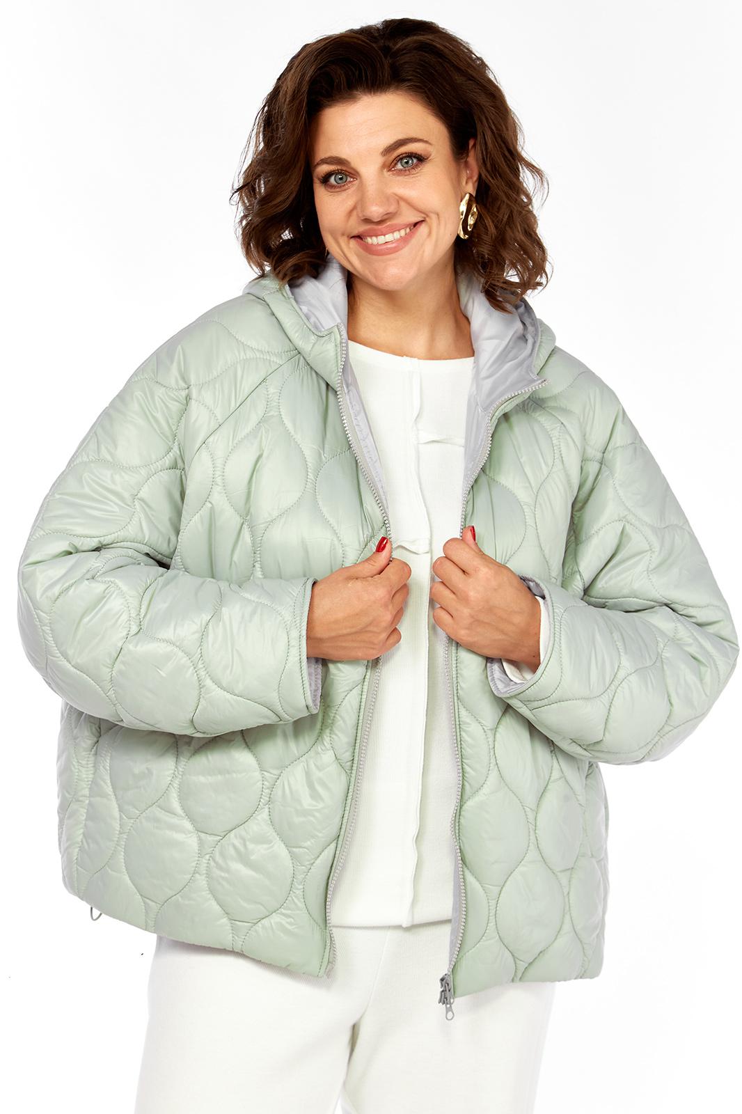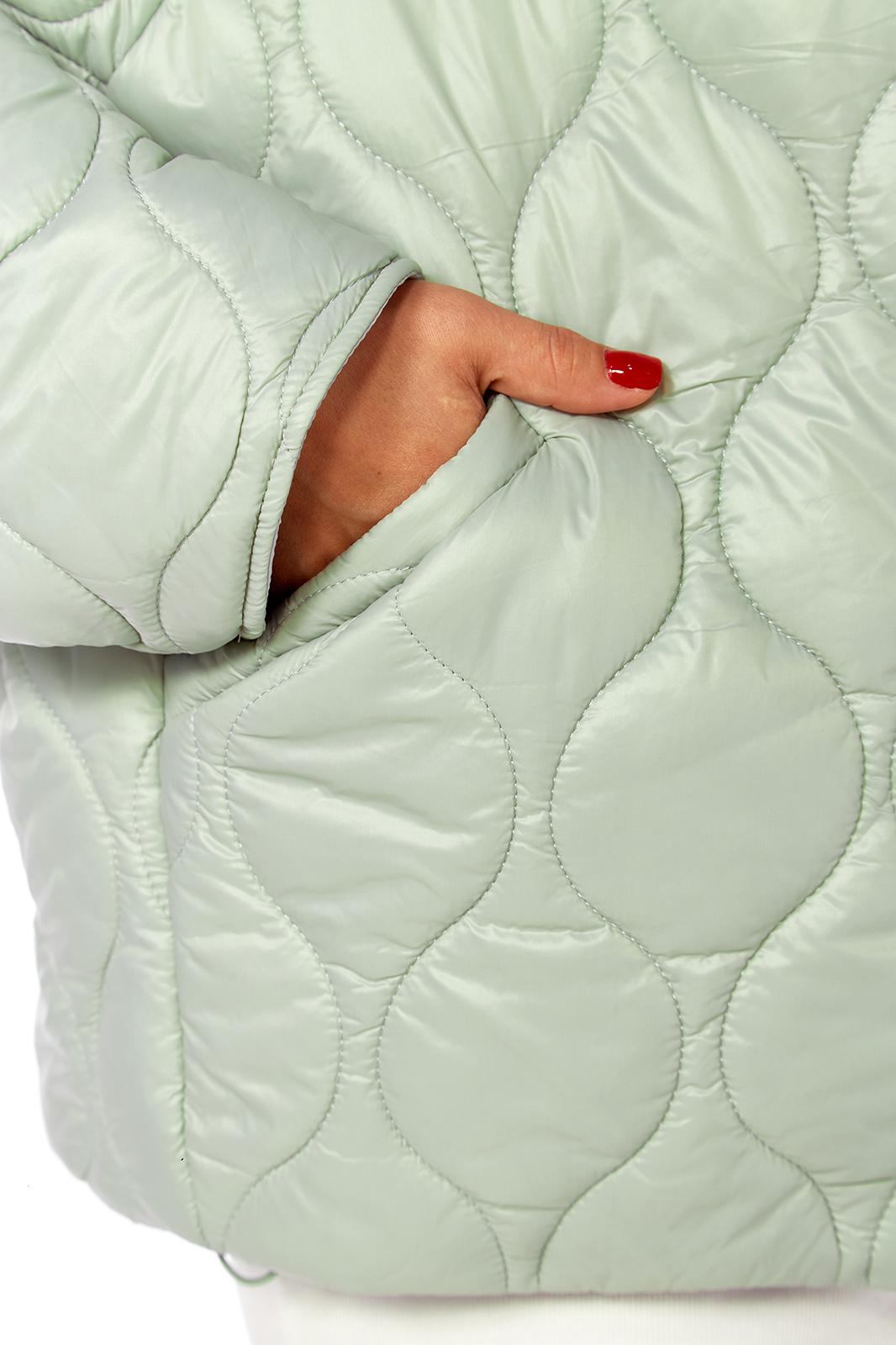 Куртка женская, О-образного силуэта с центральной застежкой на молнию. Спинка простая. Перед с боковыми карманами с листочкой. Рукав-реглан . Воротник-капюшон. По низу куртки в подкладке обработана кулиса со шнуром и регулятором. Куртка на утеплителе. Температурный режим до -5 градусов.