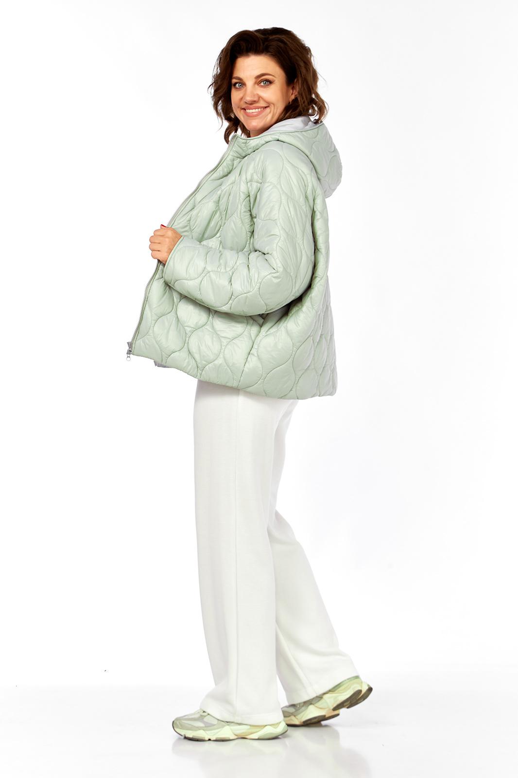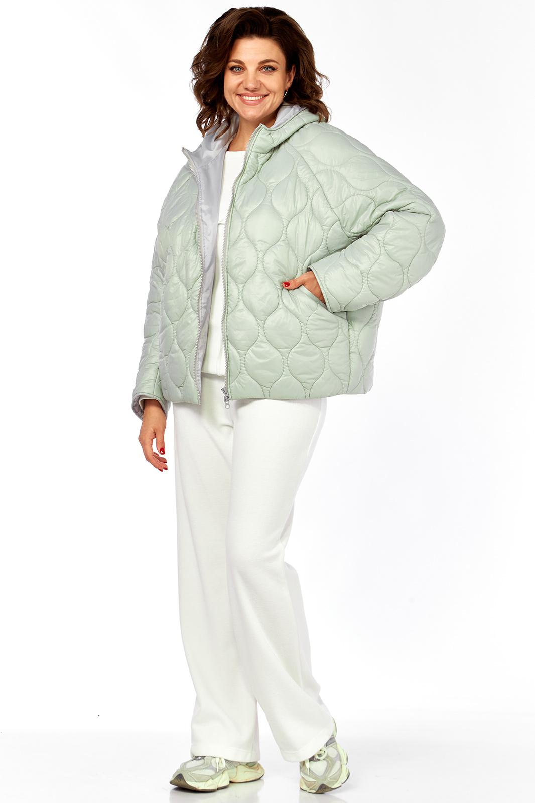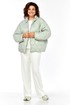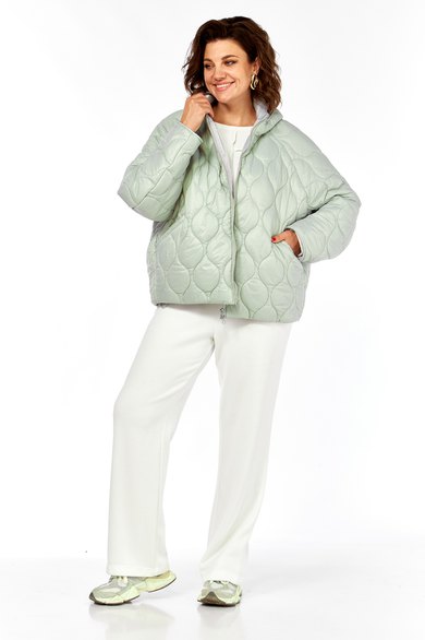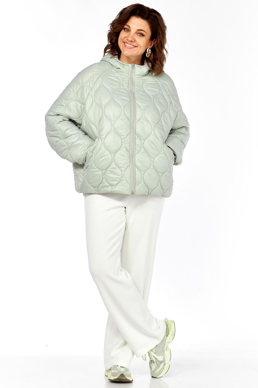 Куртка женская, О-образного силуэта с центральной застежкой на молнию. Спинка простая. Перед с боковыми карманами с листочкой. Рукав-реглан . Воротник-капюшон. По низу куртки в подкладке обработана кулиса со шнуром и регулятором. Куртка на утеплителе. Температурный режим до -5 градусов.