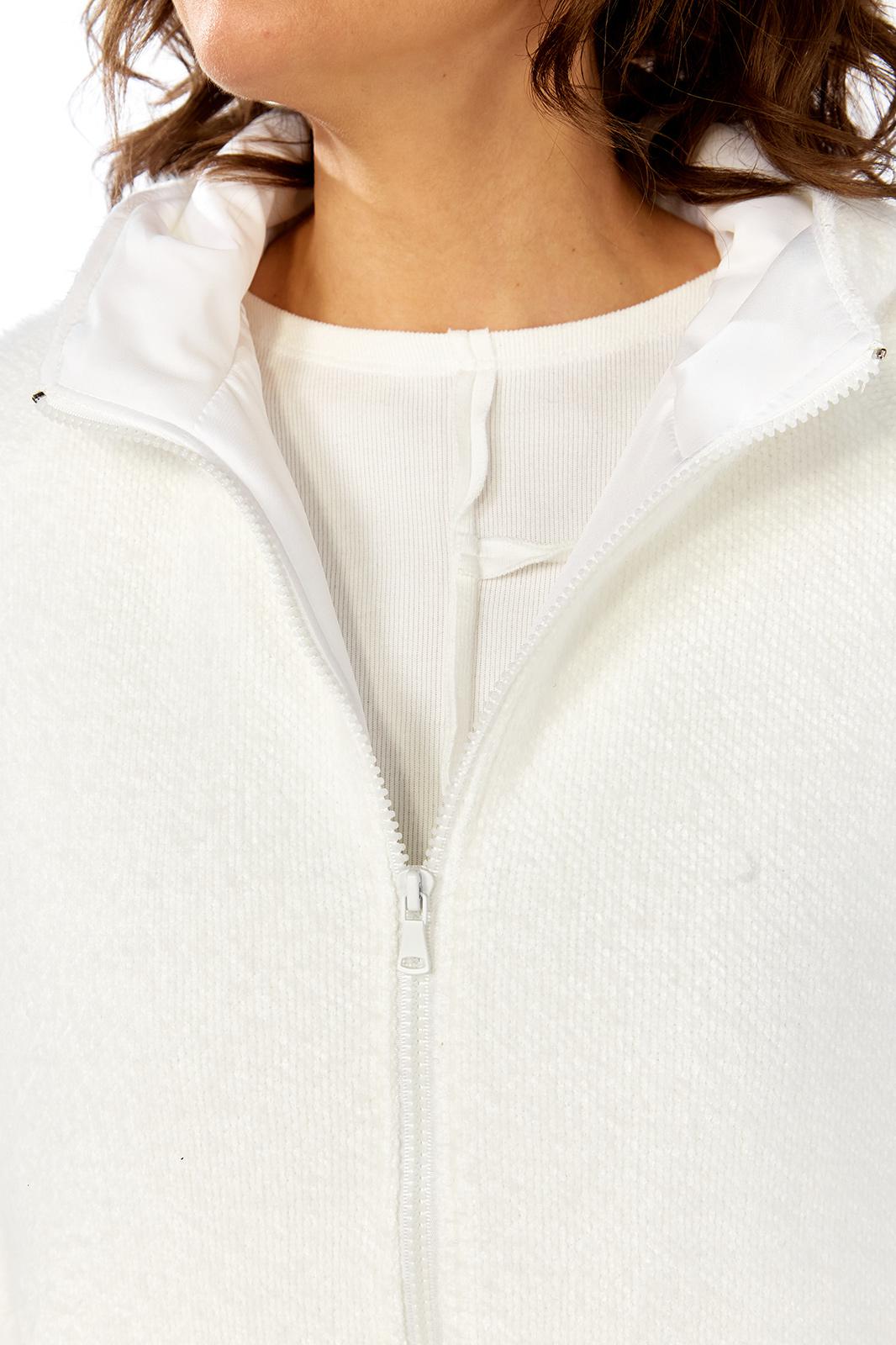 Куртка женская, О-образного силуэта с центральной застежкой на молнию. Спинка простая. Перед с боковыми карманами с листочкой. Рукав-реглан . Воротник-капюшон. По низу куртки в подкладке обработана кулиса со шнуром и регулятором. Температурный режим до 0 градусов.