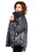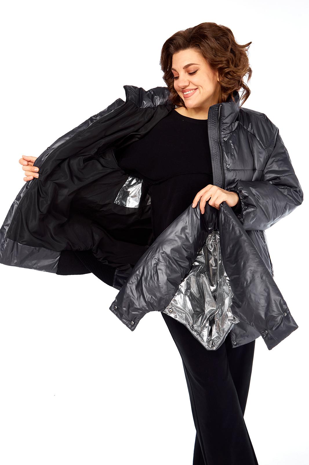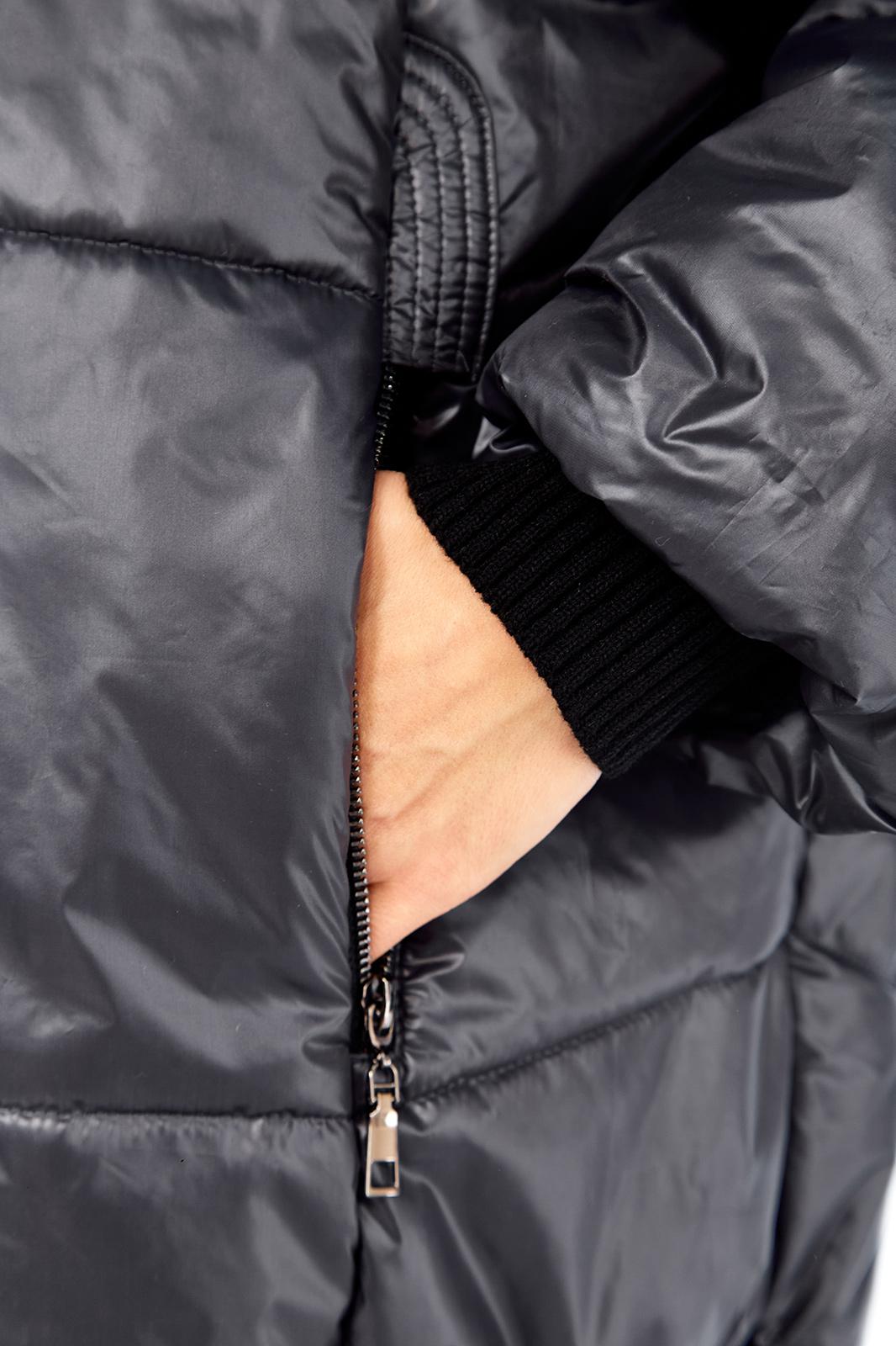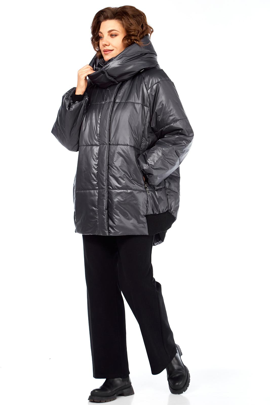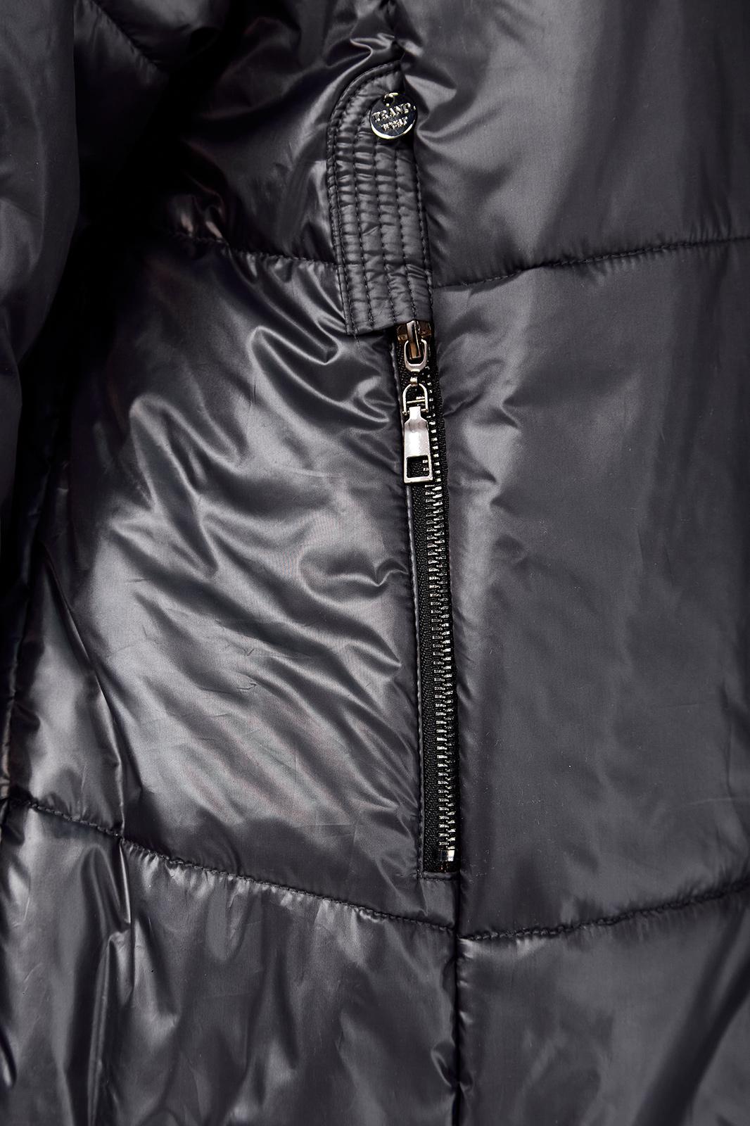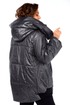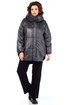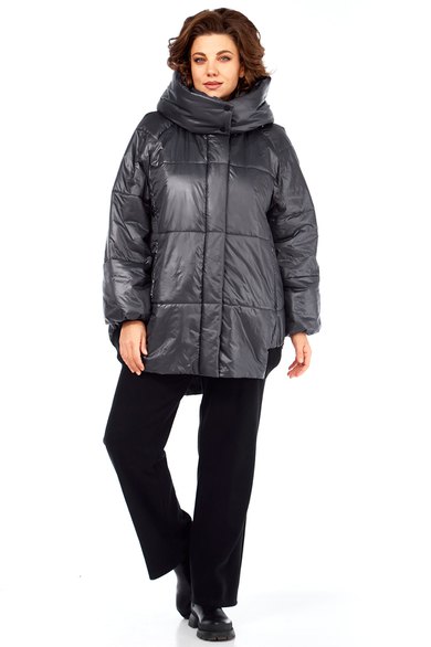 Куртка женская, прямого силуэта с рукавом реглан. Застежка центральная на тесьму молнию и планку с кнопками. По спинке рельефные швы. По переду рельефные швы, в швах карманы с молнией и отделочной деталью, по низу боковых швов-довяз. Рукав реглан с вытачкой и манжетом(довяз)- по низу. Воротник стойка. Капюшон с центральной частью, с отделочной деталью по отлету (застежка на кнопки)-съемный, фиксируется с помощью кнопок. На центральной части под молнией -ветровик. В качестве отделки используется фурнитура и детали. Температурный режим до -10 градусов. Длина по спинке 85 см, длина рукава 72 см.