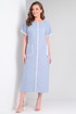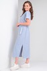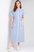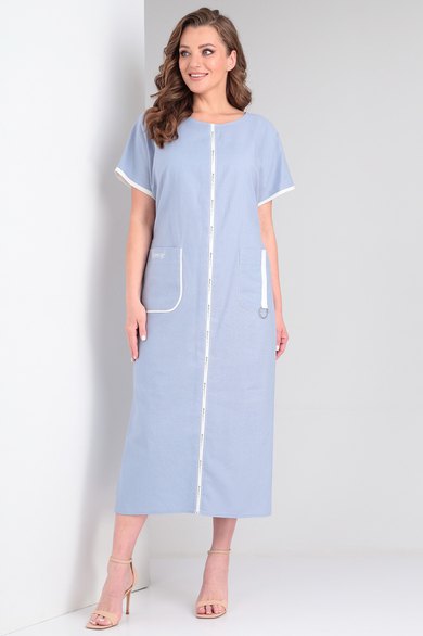 Платье женское, полуприлегающего силуэта. По переду средний шов, нагрудные вытачки,накладные карманы. По спинке средний шов,кулиса на талии. Рукав цельнокроеный; по боковым швам разрезы; по низу рукава-отделочная бейка; по карману-отделочный кант; по среднему шву переда и спинки-отделочная тесьма. В качестве отделки используется фурнитура,декоративная отделочная строчка, печать. Длина 122 см. , длина рукава 29-37 см.