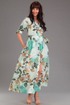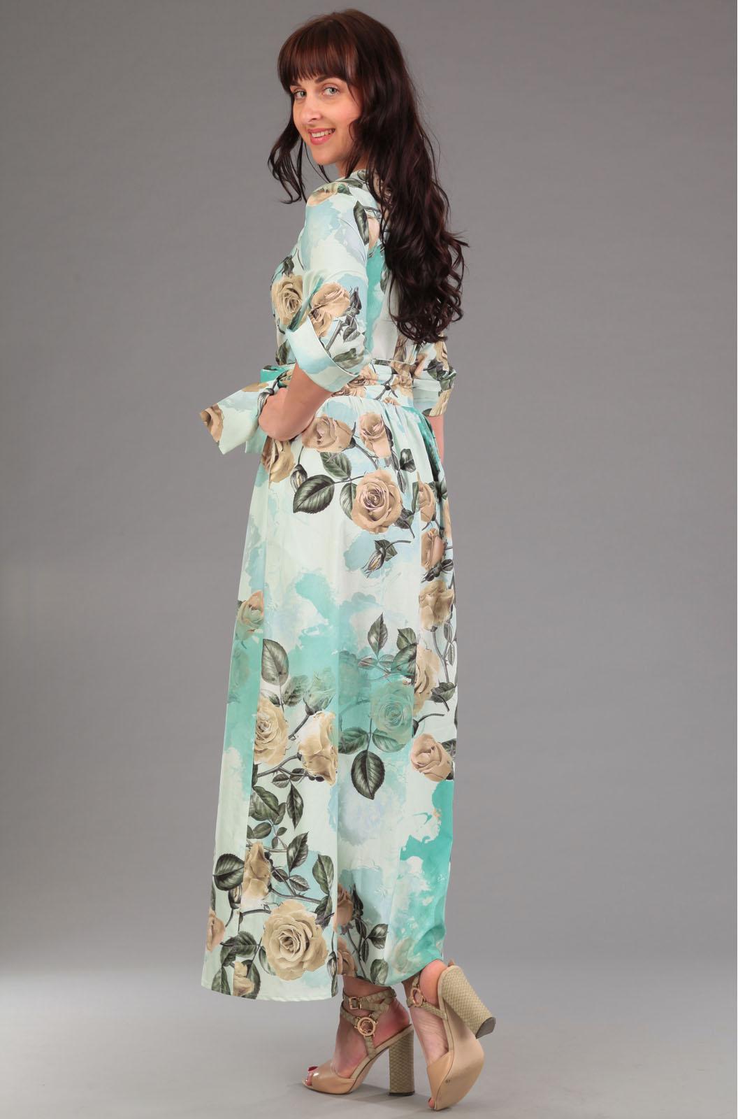Благодаря насыщенным расцветкам ткани и особому крою, в этом платье любая женщина станет богиней. Платье на застежке по всей длине, в боковом шве платья имеются карманы, рукав регулируется по длине, пояс съемный. Платье можно носить как под обувь на низком ходу, так и на высоком. Длина изделия по спинке 144 см, длина рукава 34 см.