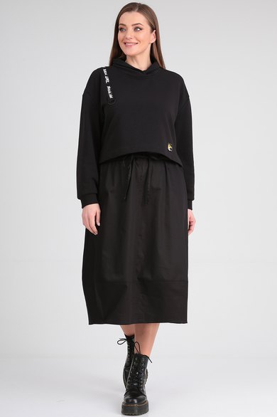 - Тип ткани: Платье комбинированное: верх из трикотажной ткани, состав ткани 50% хлопок+50% полиэстер, юбка из текстильной ткани, состав ткани 50% хлопок+50% полиэстер.