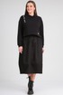 Верх платья полностью отлетной, соединен с юбкой подкладкой. Рукав втачной одношовный с манжетой. Линия плеча спущена. Вырез горловины округлый с воротником. Полочка с отделочной тесьмой и нашивкой. Спинка со средним швом, длиннее полочки. Юбка на широком поясе-довязе. В пояс по кругу протянут шнурок, концы которого выходят через люверсы. Длина верха по спинке 57см, длина полочки 51см, длина рукава от выреза горловины 74см. Юбка четырехшовная. В боковых швах юбки карманы. Длина юбки без пояса 74см.